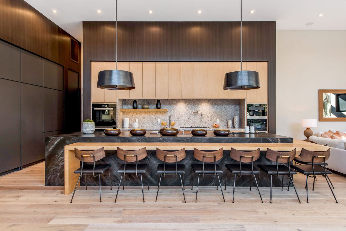 Embrace the trend of terrazzo by using terrazzo tiles for your splashback. Additionally, these composite tiles consist of chips of marble, quartz, or glass embedded in a cement or resin base, creating a unique speckled pattern. Terrazzo tiles offer a contemporary and sophisticated look that adds texture and visual interest to your kitchen. Beverly Hills Modern Home with Stunning Views