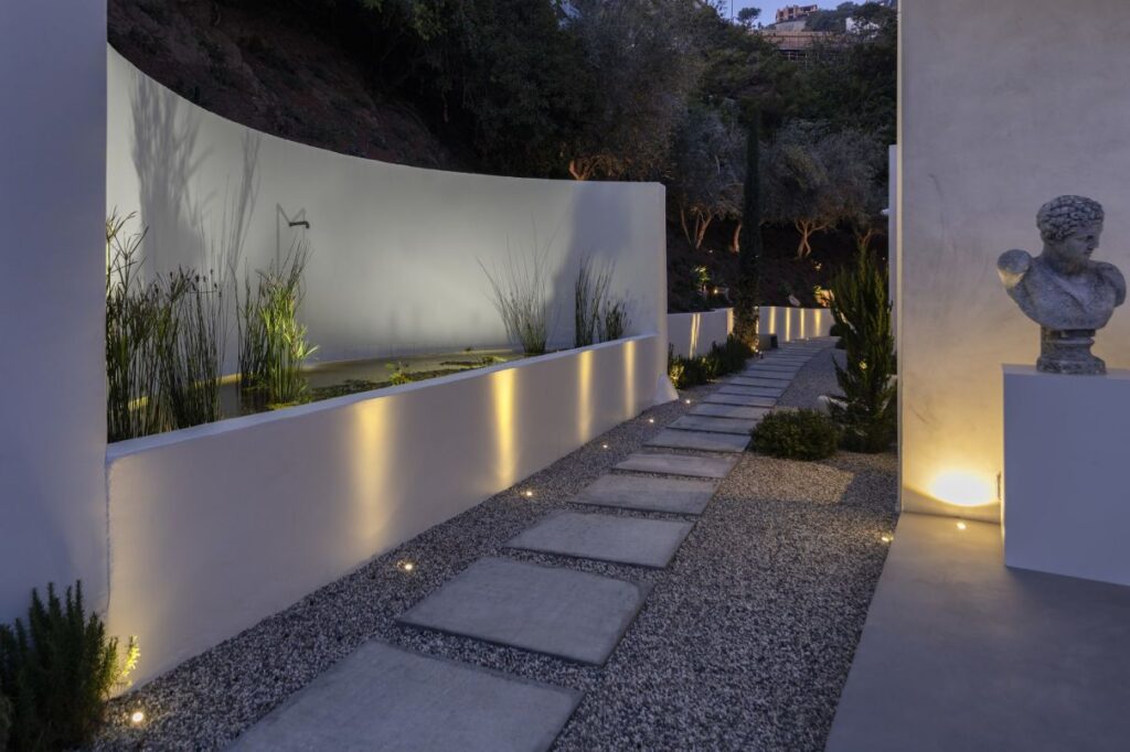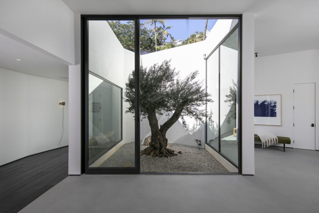 Located in exclusive Upper Rising Glen and sited on a 19,000 SF lot is this newly completed estate by renowned OSKLO LA. Gated, hedged, and supremely private with a cobblestone motor court that leads to this exquisitely sophisticated residence. Inside, walls of glass frame the manicured yard. Soaring 13 ft. ceilings float above the great hall which is flanked by an interior atrium with a centenarian Olive tree. The living area is the epitome of refinement with the finest finishes, including dramatic stonework, 12 ft. floating shelves, and matte black oak and high pressure concrete finished floors. The spacious open floor plan offers the quintessential LA lifestyle with a media enclave, grand entertaining space, bar, and dining room.