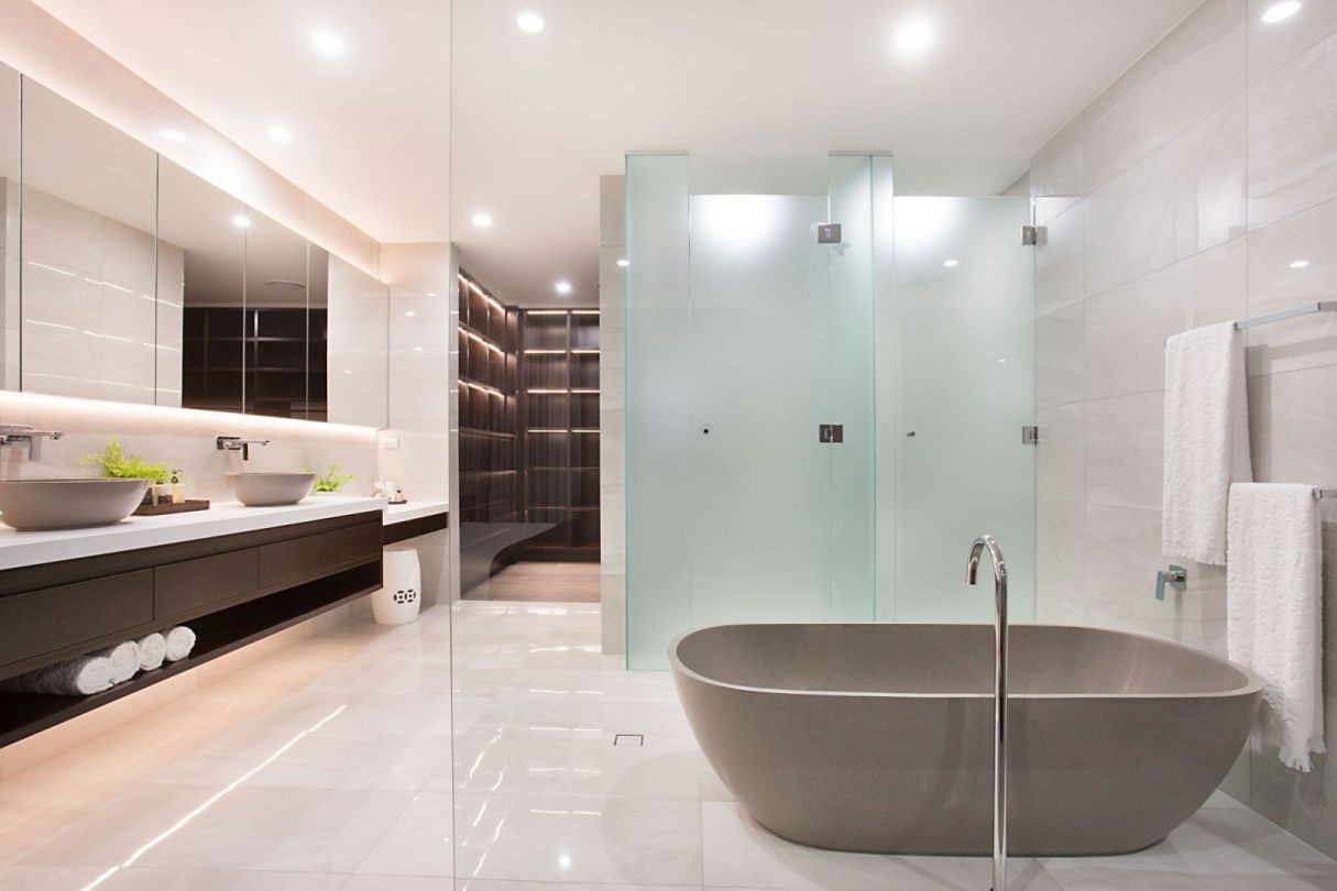 24 | The gray oval bathtub is also a fantastic choice for a modern and contemporary bathroom, especially when paired with a washbasin of the same design and color. Immaculate Architecturally Designed Modern Home in Queensland, Australia