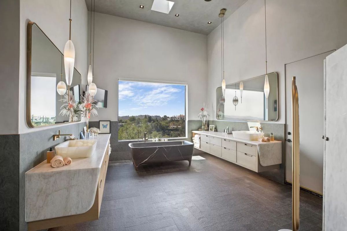 9 | Bring a healthy breath to the room with the style of a contemporary bathtub with legs at four corners and a gray color with porcelain material. Beverly Hills House with Extraordinary Living Spaces asks for $24 Million