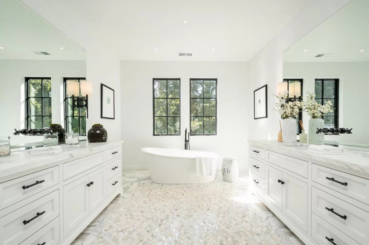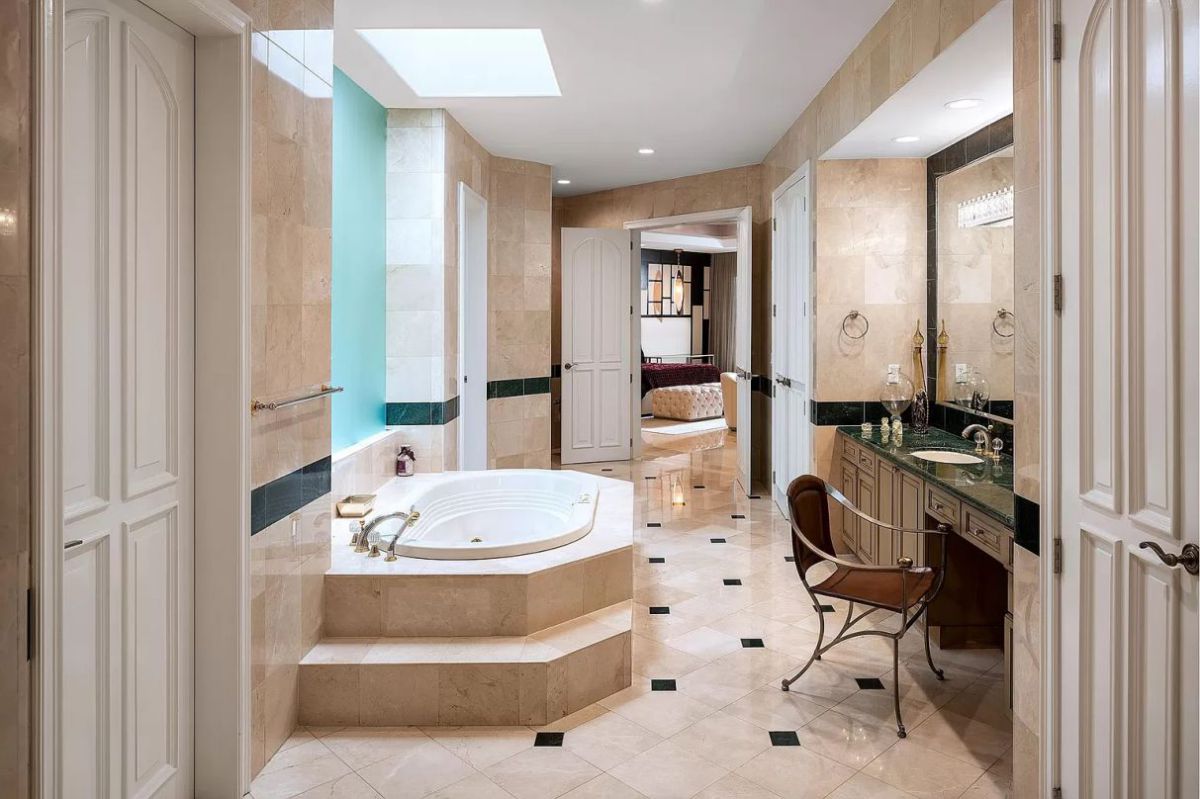 13 | It adds light and harmonizes with the room’s design with a white porcelain bath and a stainless steel shower. Beverly Hills Traditional House for Sale with An Asking Price $13 Million