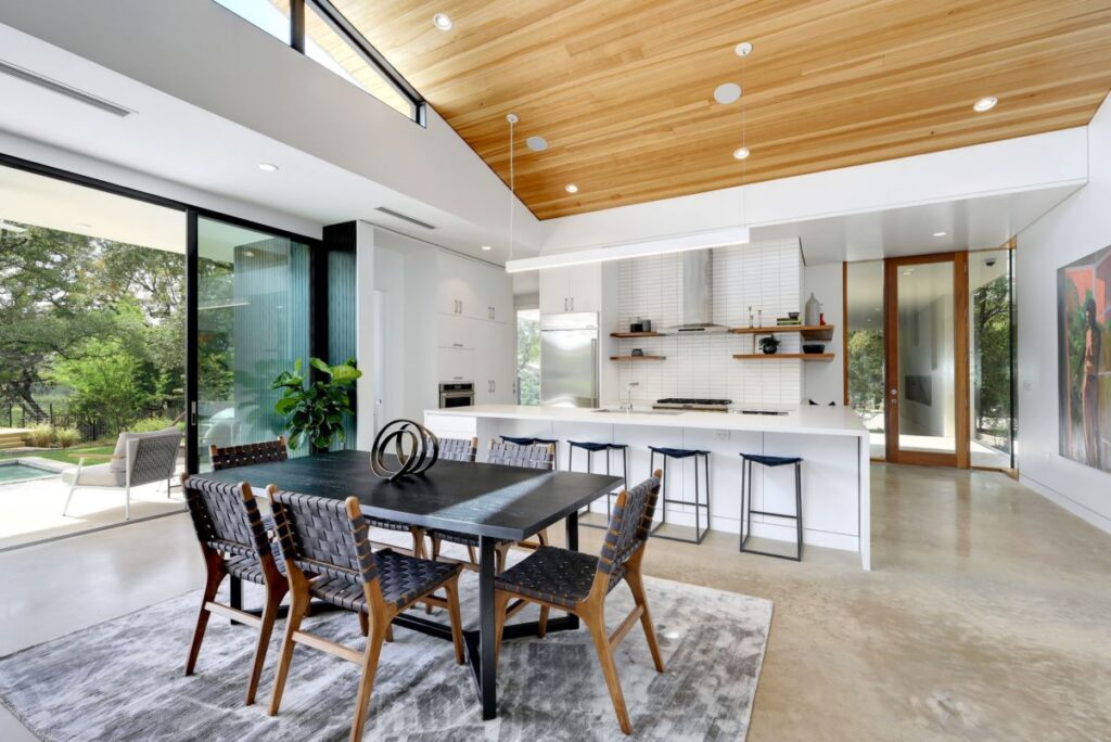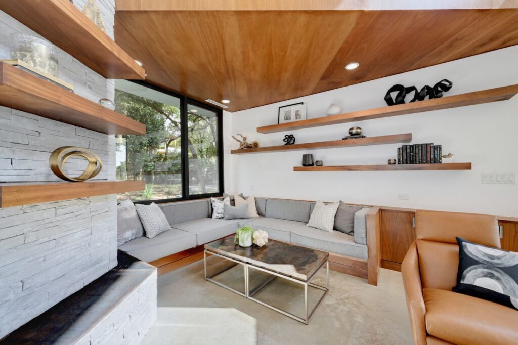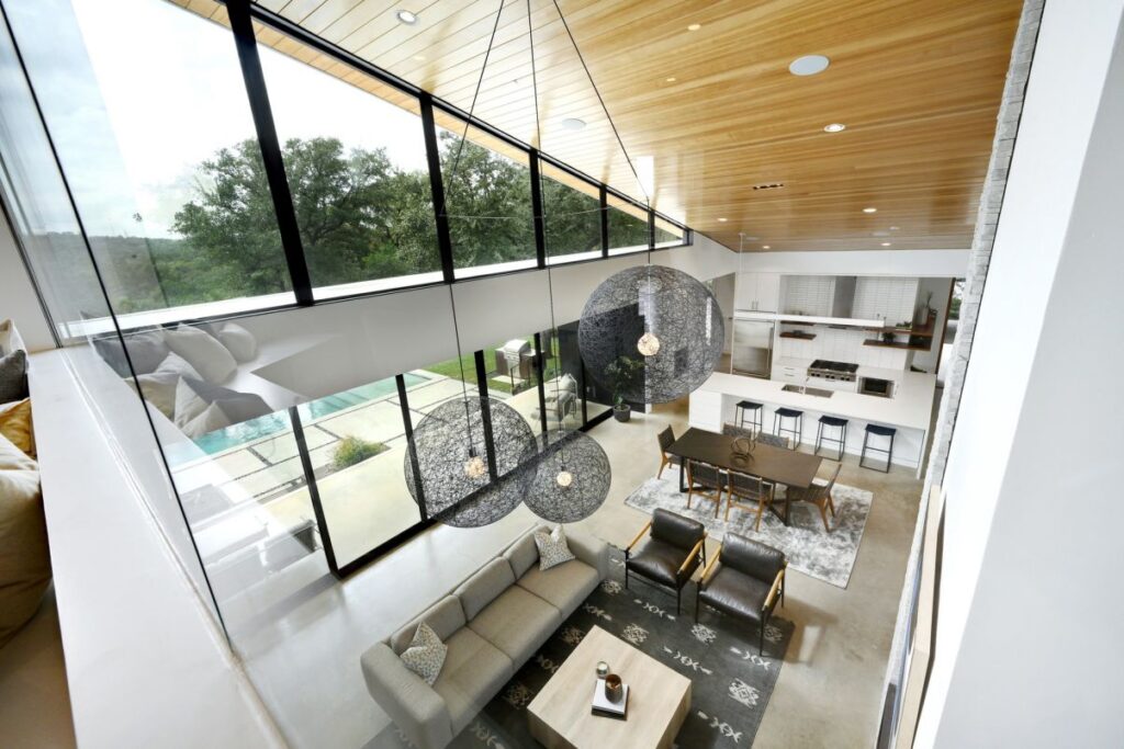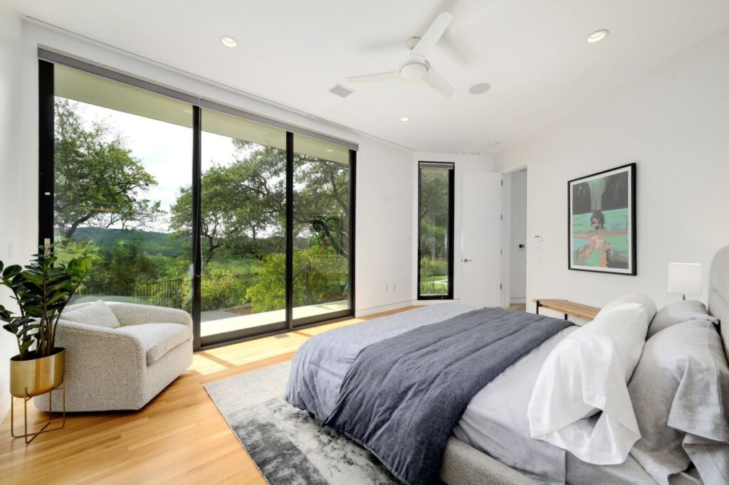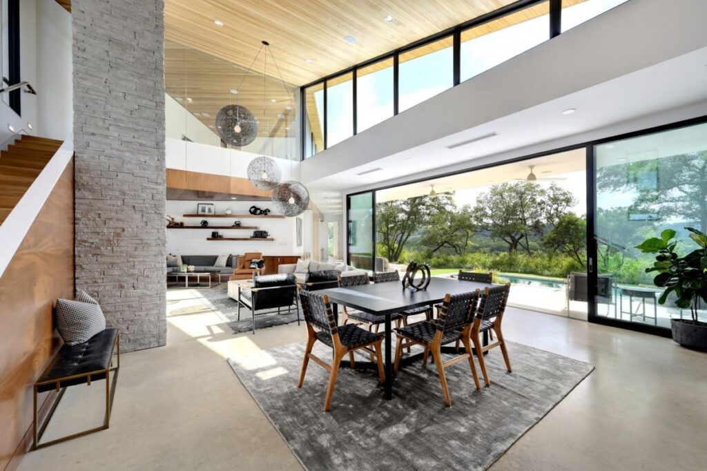 Text by the Agent: AIA masterpiece on the best greenbelt lot in Austin. Known as Baldridge Architect‘s “Branch House” this stunning one-of-a-kind masterpiece was built in 2016 and featured on the AIA Homes Tour the same year. A work of architectural art, the thoughtful design takes advantage of the best views of the Barton Creek Greenbelt and Texas Hill Country that you’ve ever seen. Tucked into a wooded and serene half acre home-site, the property has a sophisticated and unassuming presence that opens up dramatically upon entering the home. Once inside, a wall of windows opens up completely blending the outdoors with indoors and bringing that breath-taking view right into your living space. The open concept living and dining areas feature soaring ceilings juxtaposed with comfy reading nooks and cozy spaces around every corner.