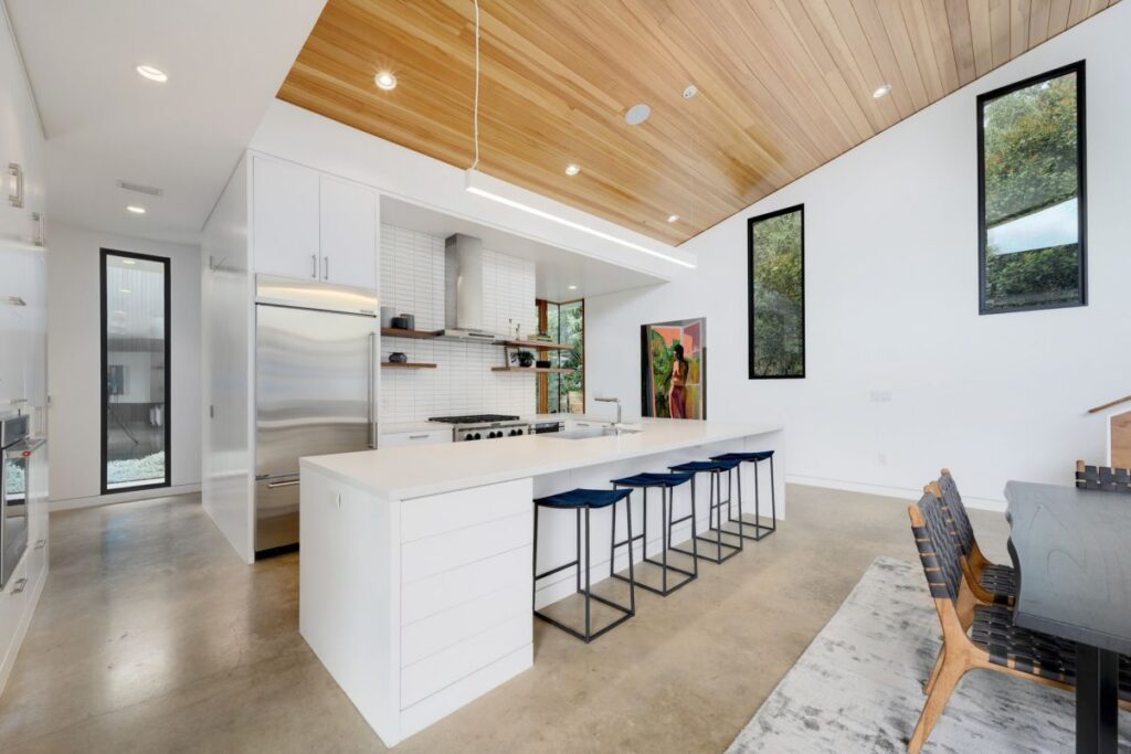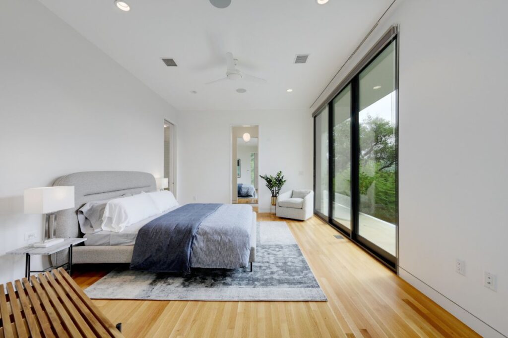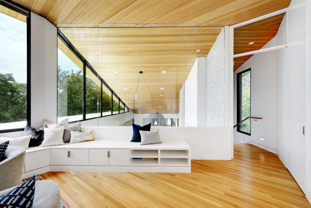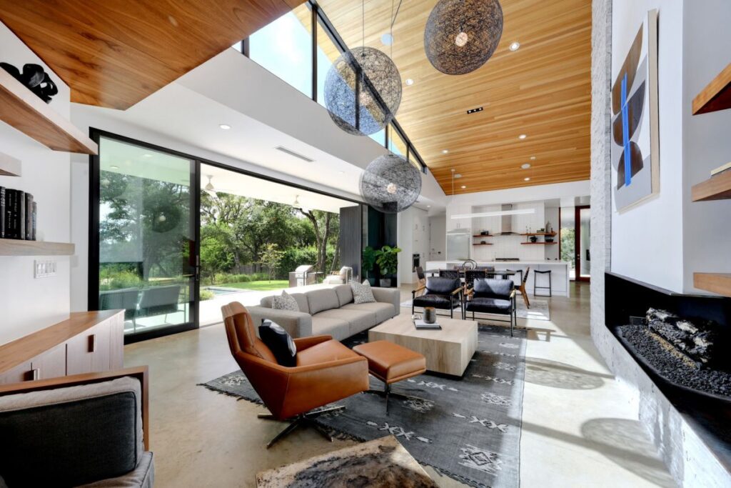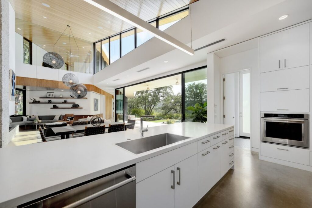 Text by the Agent: AIA masterpiece on the best greenbelt lot in Austin. Known as Baldridge Architect‘s “Branch House” this stunning one-of-a-kind masterpiece was built in 2016 and featured on the AIA Homes Tour the same year. A work of architectural art, the thoughtful design takes advantage of the best views of the Barton Creek Greenbelt and Texas Hill Country that you’ve ever seen. Tucked into a wooded and serene half acre home-site, the property has a sophisticated and unassuming presence that opens up dramatically upon entering the home. Once inside, a wall of windows opens up completely blending the outdoors with indoors and bringing that breath-taking view right into your living space. The open concept living and dining areas feature soaring ceilings juxtaposed with comfy reading nooks and cozy spaces around every corner.