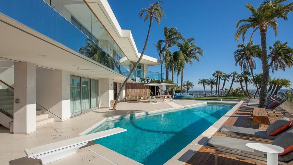 One-Of-A-Kind Home is nestled in the iconic Bird Streets with spectacular panoramic views stretching from DTLA to the Pacific Ocean. Modern life is advanced and luxurious, on this. The 6,000 SF floor space flows seamlessly into a spectacular outdoor area with a heated pool and jacuzzi, cabana, lawn area and observation deck overlooking the shimmering city lights. Modern interior with open kitchen with island and breakfast bar, professional appliances and stunning natural light – Outdoor indoor living – ideal for entertainment! Located outside Doheny Drive for the easiest Sunset Strip access and only minutes from the heart of West Hollywood & Beverly Hills. A remarkable value and a rare opportunity to rent this special diamond gem overlooking the entire Los Angeles! the iconic Bird Streets.