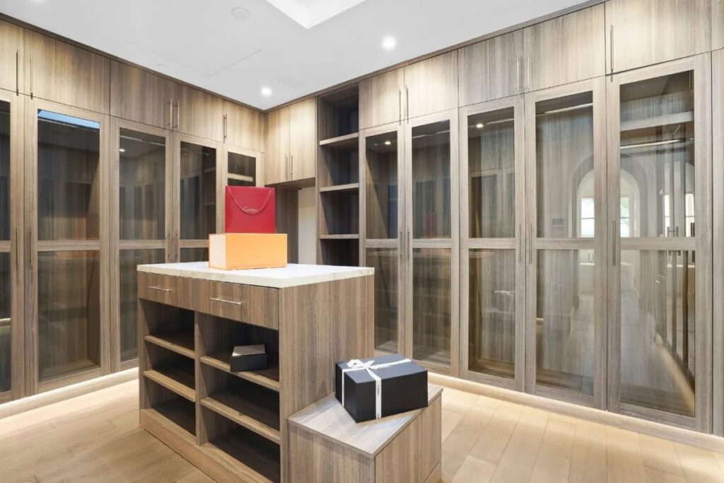 Highlights include an open chef’s kitchen with center prep/dining island and adjoining breakfast and family rooms, and elegant formal living and dining rooms with spectacular glass wine display walls. The master suite features an ocean view terrace, indulgent spa bathing suite, and large dressing room with custom built-ins. Every spacious bedroom encompasses an ensuite bathroom.