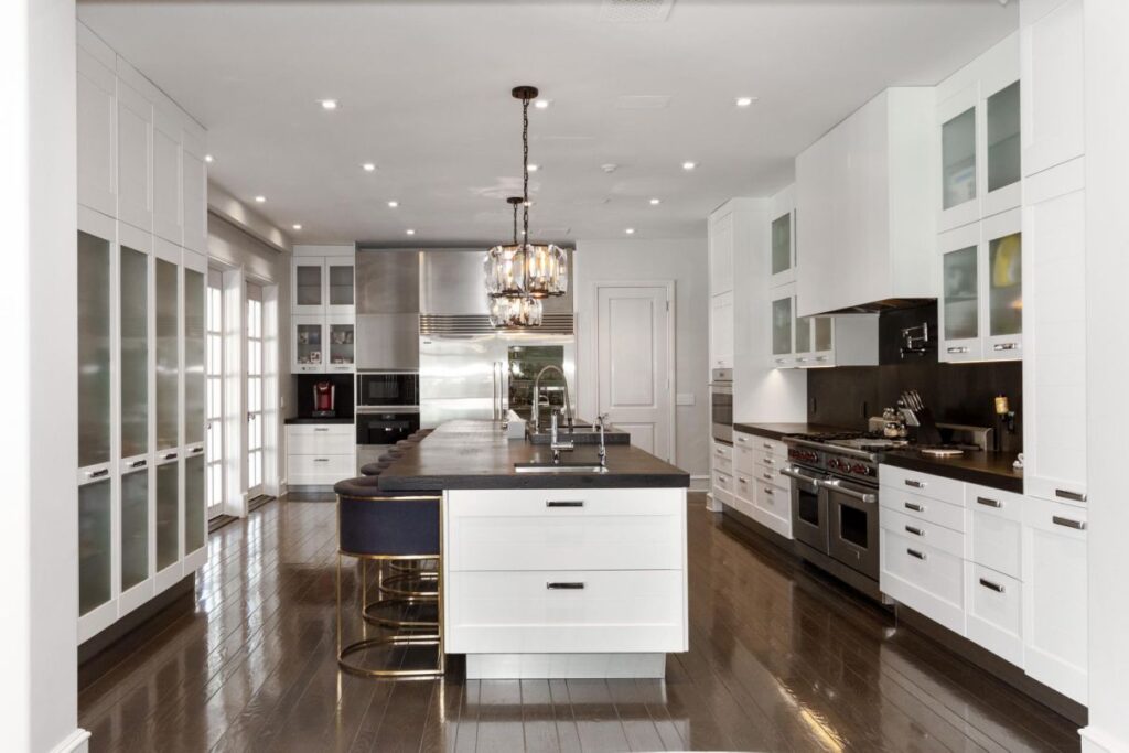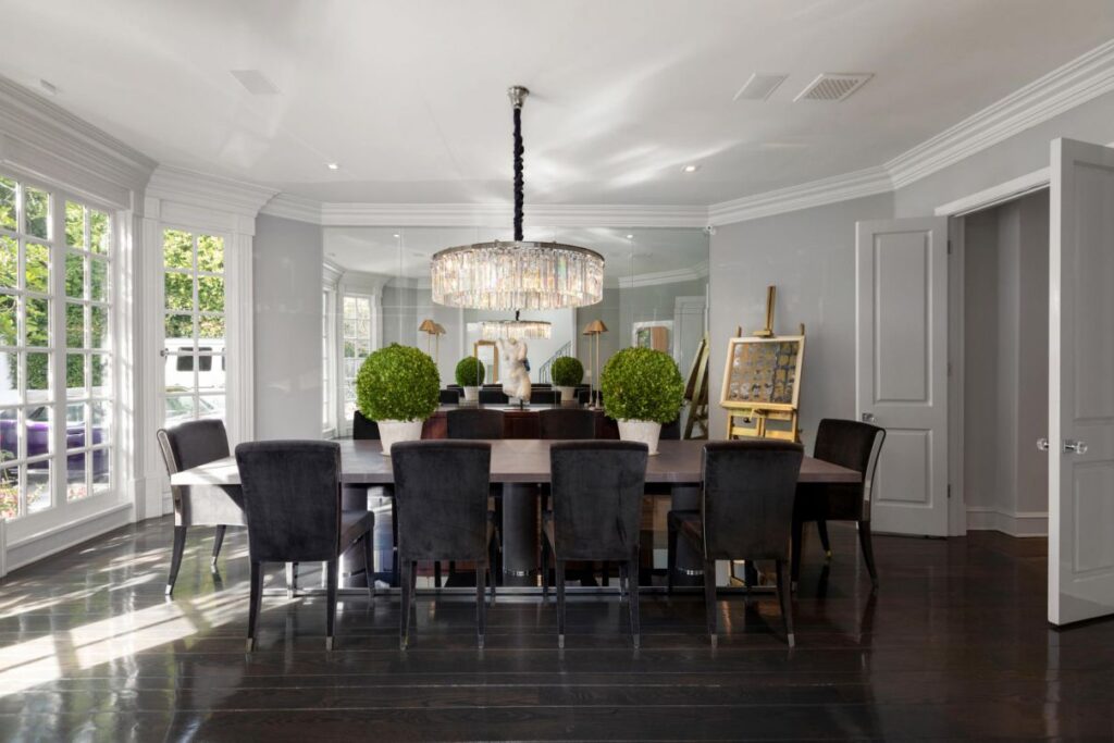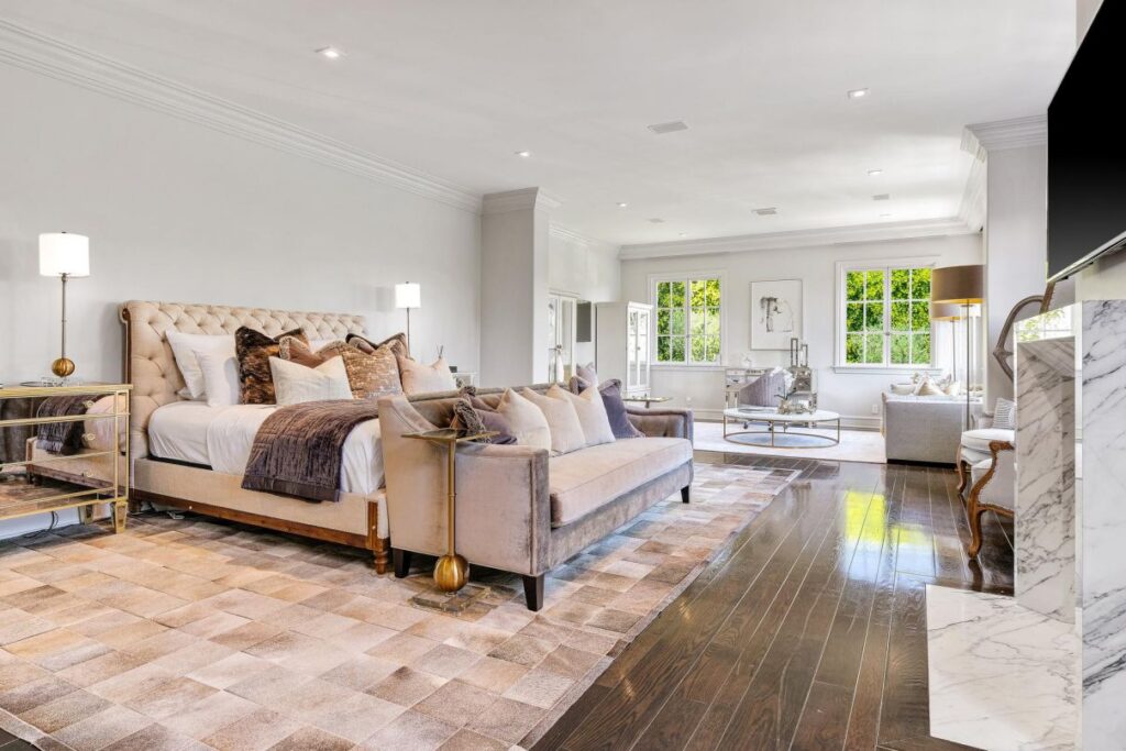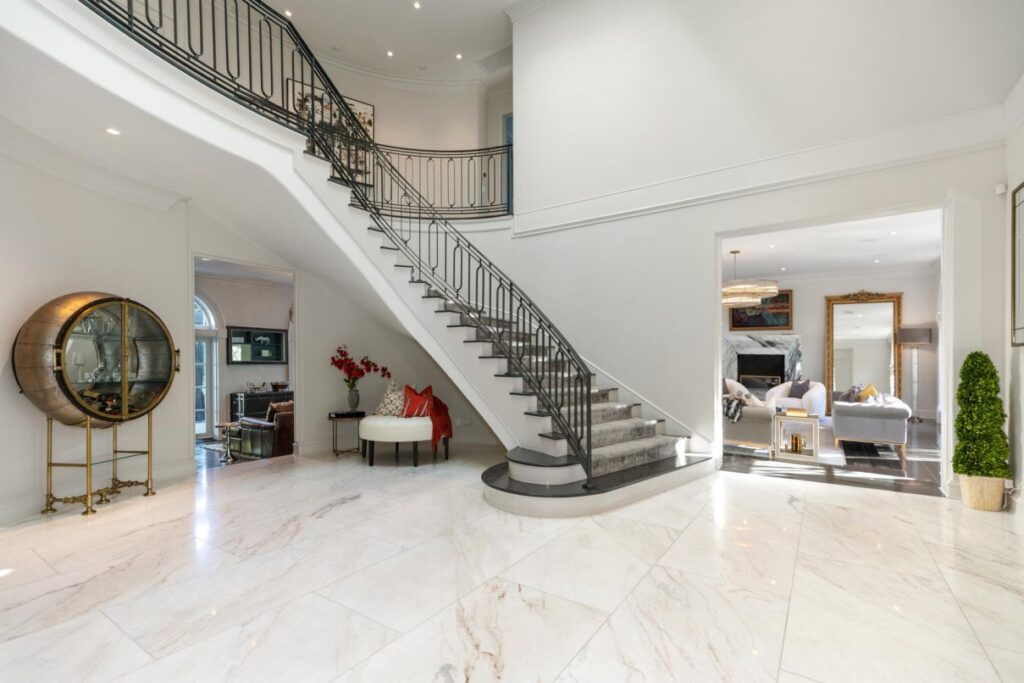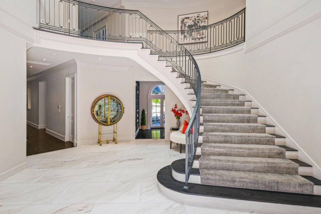 Text by the Agent: Enclosed by gates & lush landscaping sits this grand French home for Sale in Beverly Hills, situated on an over half-acre lot in the highly sought-after Beverly Hills Flats. Upon entering the formal two-story foyer with French limestone flooring and winding staircase, you’ll bask in abundant natural light & opulence. High ceilings and an expansive open floor plan offer the perfect spaces for entertaining and intimate gatherings.
