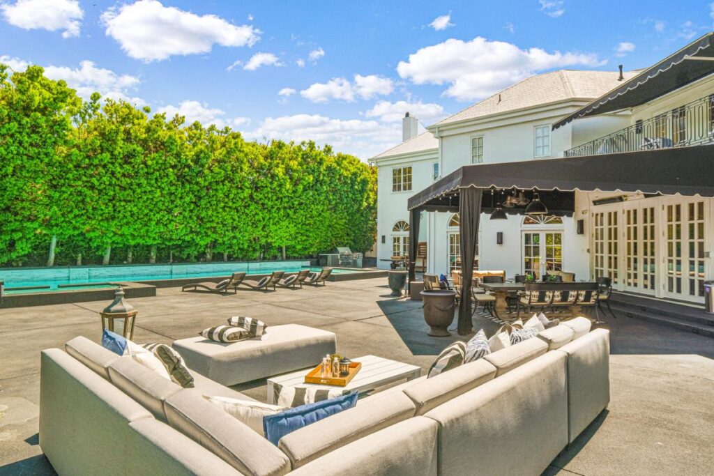 The formal living room is encased by French doors that open to the beautiful grounds, which boast an exceptional resort-style setting with spacious patio spaces, expansive lawns, plus a pool/spa. Second level has 5 bedrooms with en-suite baths, a sophisticated master suite complete with fireplace, dual baths, walk-in closets, sitting room, and sauna. With the latest technology by Crestron and Nest, maid’s room/office, library, 3 car garage and motor court, this property has everything you could want and all a stones’ throw away from the best shopping and restaurants Beverly Hills has to offer.