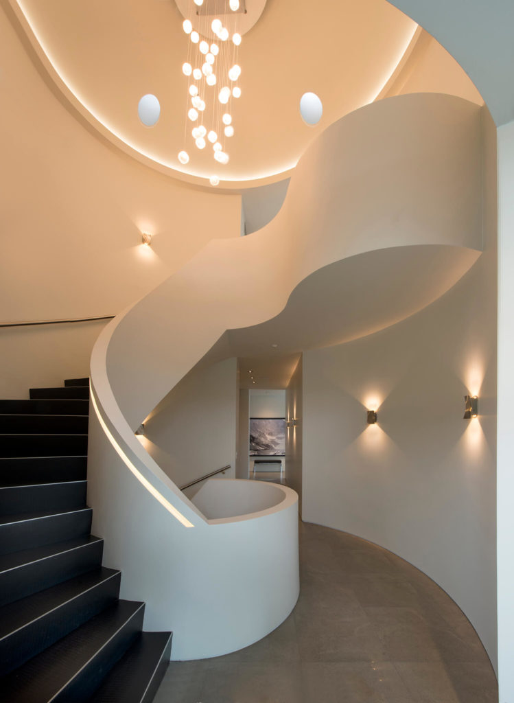 Truly unique in its clever combining of design elements and materials, the structure features automation throughout and the latest in energy efficient green technologies, even going so far as to use wood post offcuts re-purposed to build custom wine room racks, for example. Amazing Sin-Ceras Luxury Home in Canada by All Elements.
