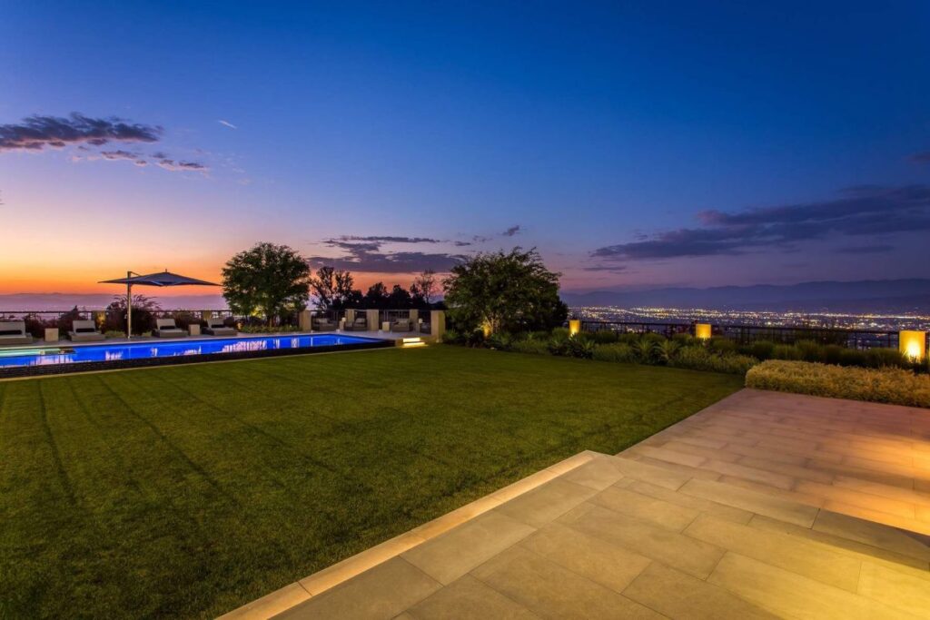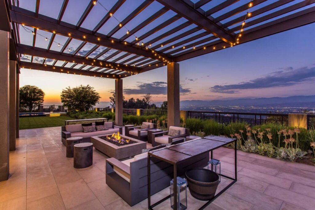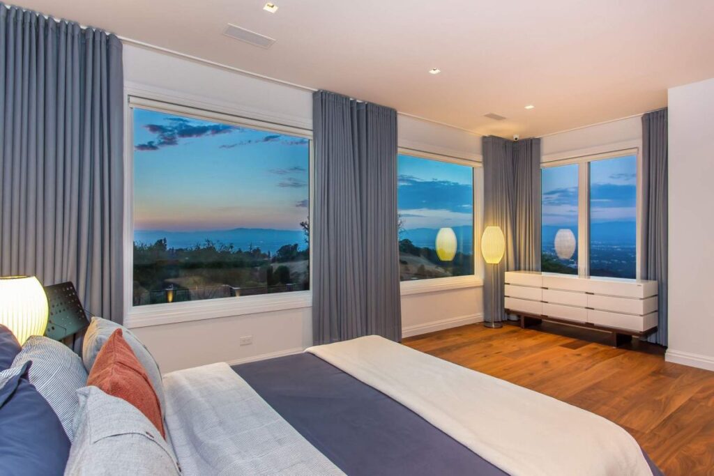 The formal living room connects to an inviting secondary living room equipped with a full marble slabbed bar, perfect for entertaining guests. The extravagant, custom-built exterior grounds include an infinity edge pool, tennis court with permits to add an extension, and Crestron powered surround sound and multimedia system. This home is complete with 270 degrees of alluring views of the San Fernando Valley which showcases the grandeur of Los Angeles.