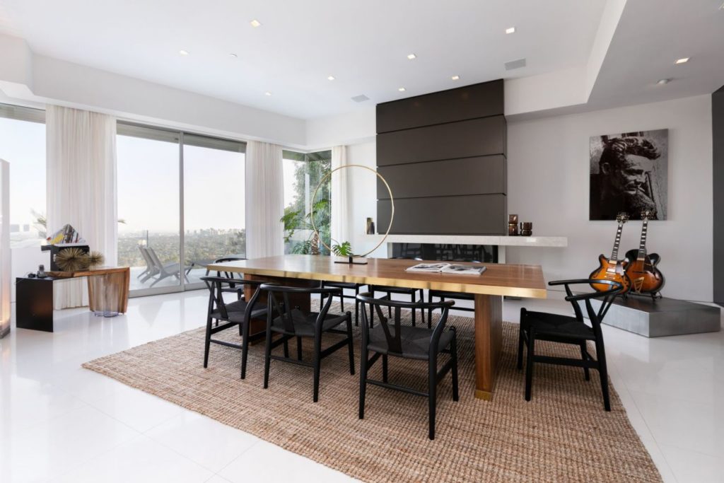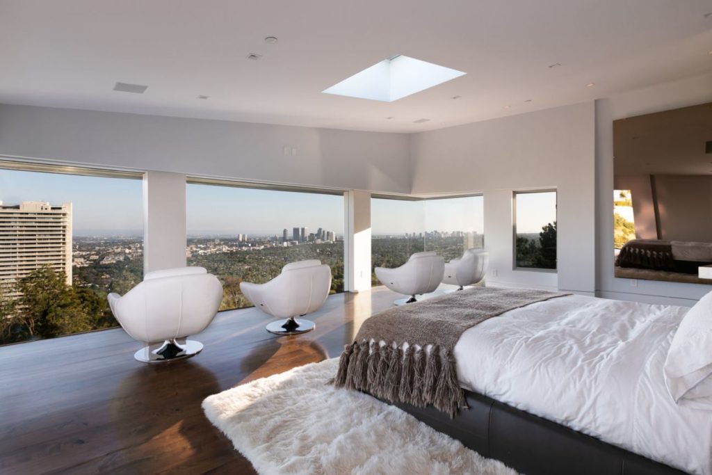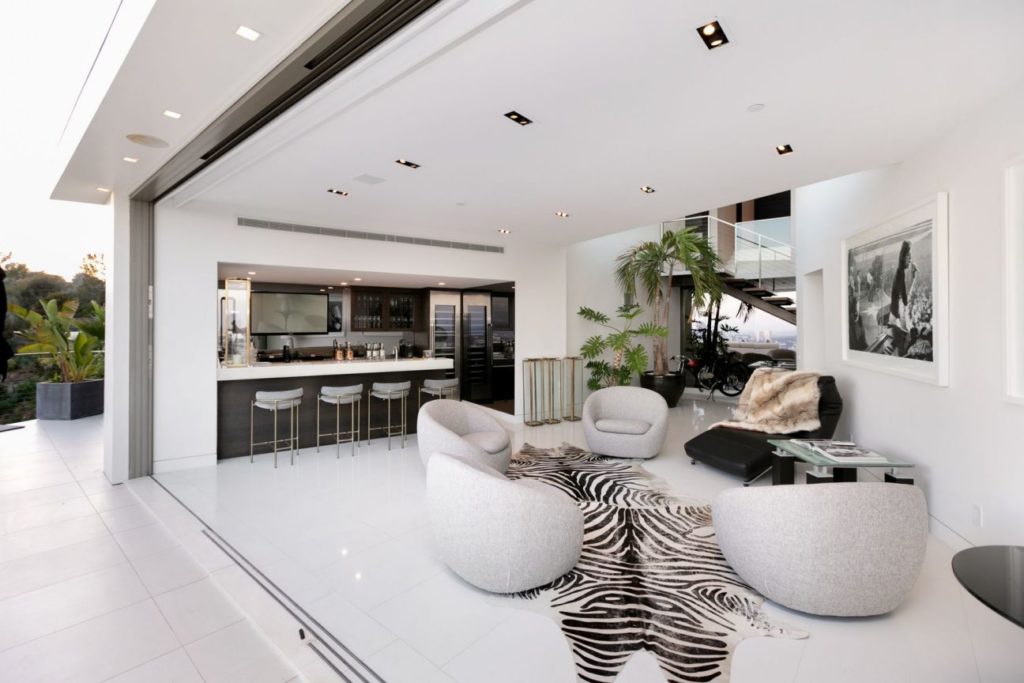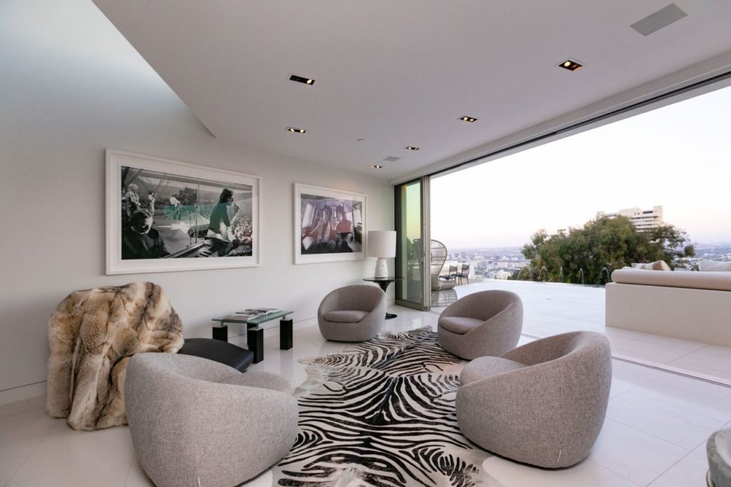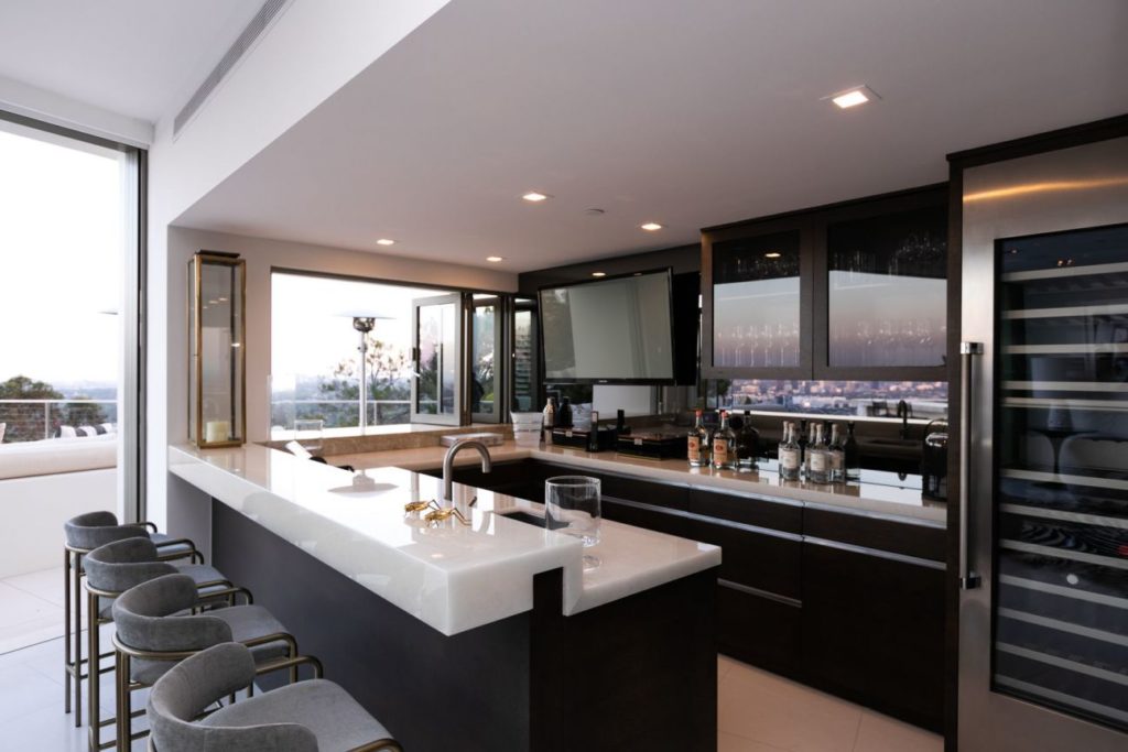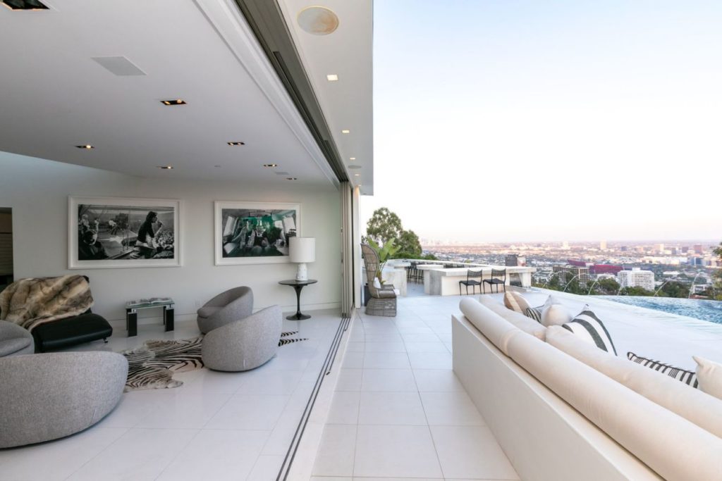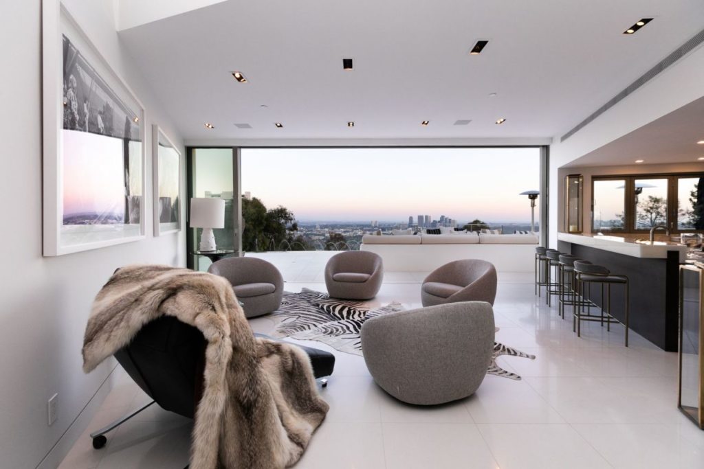 The Ultimate Trophy Compound in Los Angeles located on a quiet cul-de-sac backed on the market for $16,495,000. The previous listing on 21 July 2017, this house offered 19,750,000 by Sotheby’s International Realty. This extraordinary mansion offers sweeping views from DTLA to the ocean. American walnut flooring throughout 5 bedrooms, 6 baths, a theater and gym. Spacious master with skylights, large closets and separate handbag and shoe rooms. Dining area includes Tiffany dining table and Delfin swivel chairs. Home theater with seating for 10 features plush reclining sofas, LED lighting and home automation. The outdoor space hosts an 1800 square feet. infinity pool, 8 feet fire pit and alfresco dining areas and more. Ultimate Trophy Compound in Los Angeles.