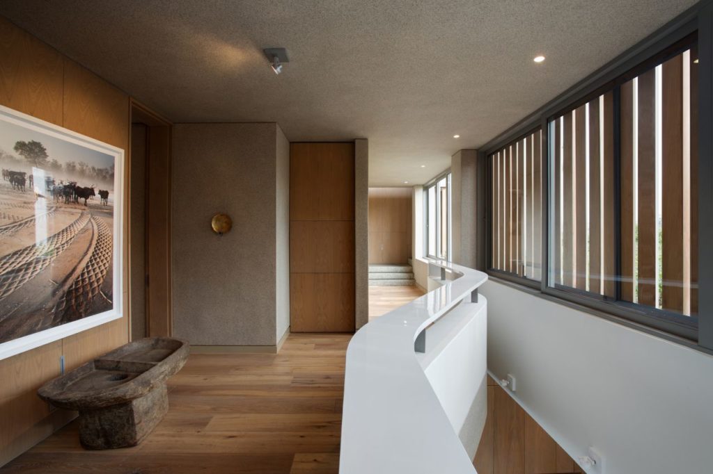 The house in South Africa shape like a simple box, floating on the sand dunes, attracting and framing the scenery. The outer shell of the box finished in a concrete with a rough texture contrasting with the smoothness and cover to create a delicate frame. An art by SAOTA!