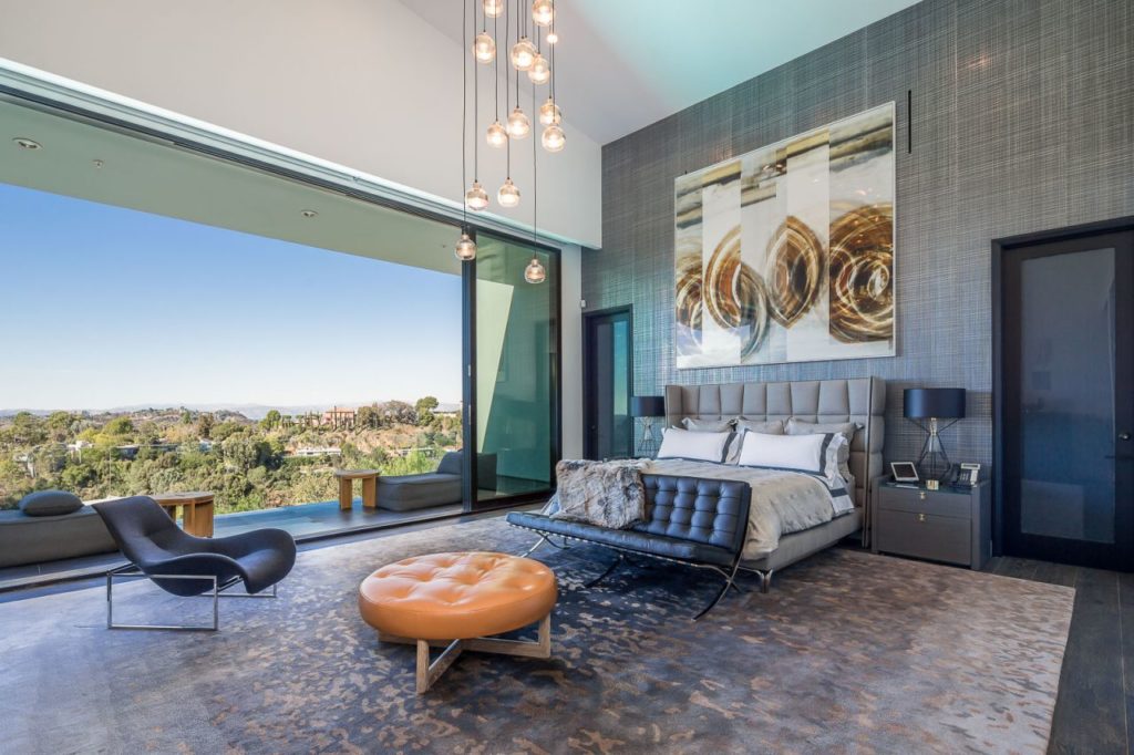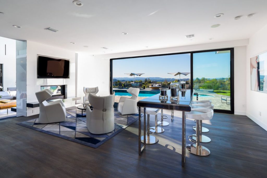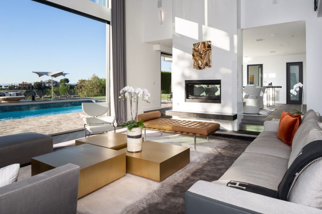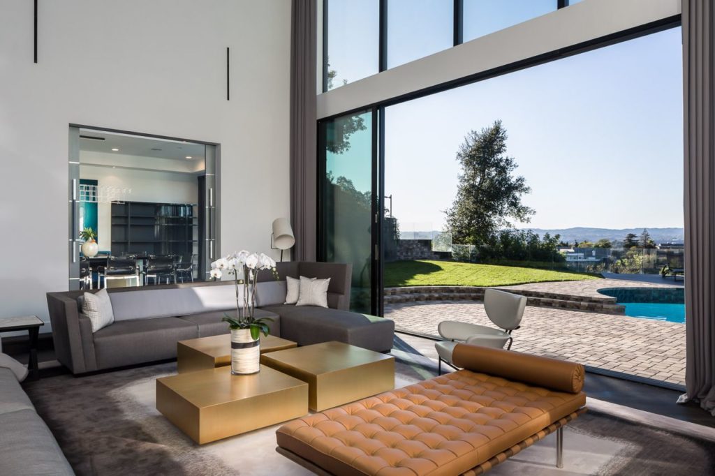Giant ceiling height with multi-window pockets Fleetwood windows open to large outdoor spaces that allow the true California indoor lifestyle to live outdoors. Beverly Hills Modern Home of Luxury.