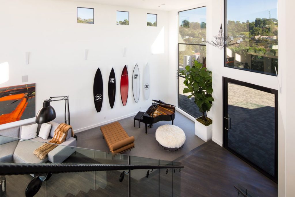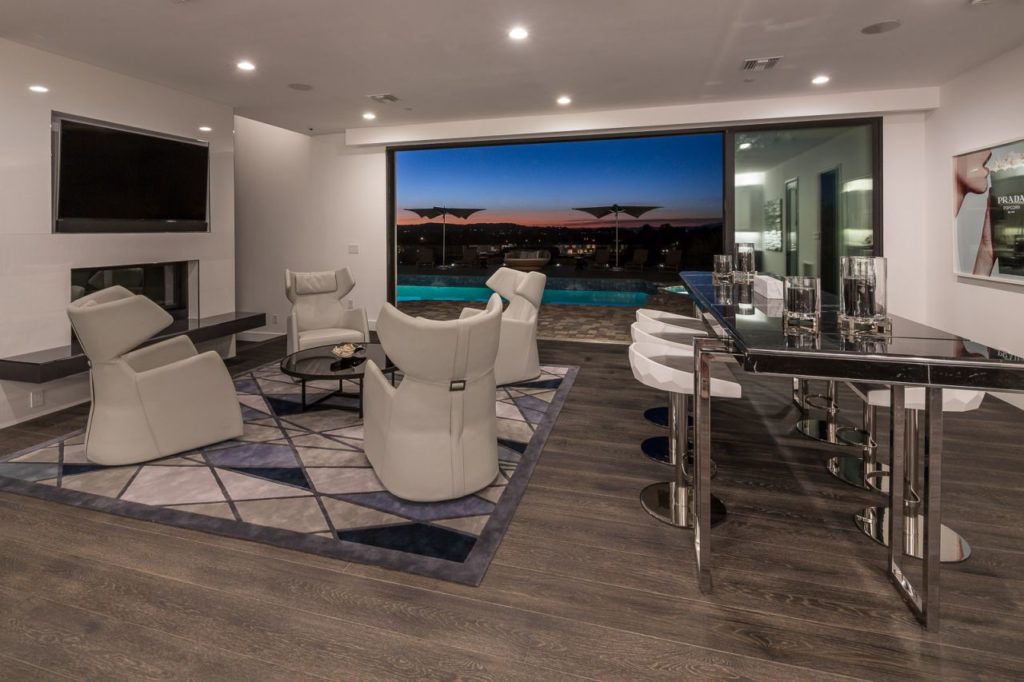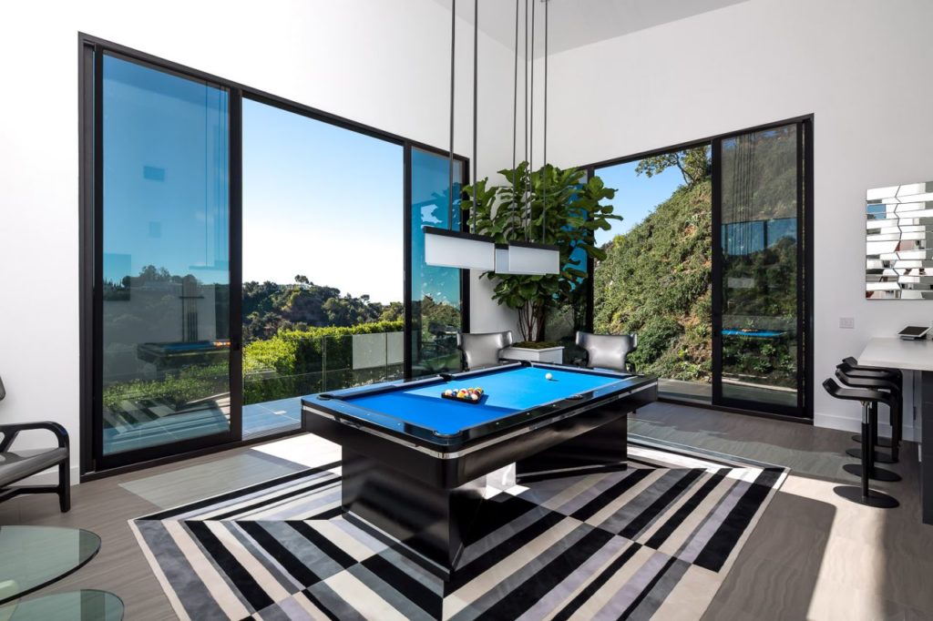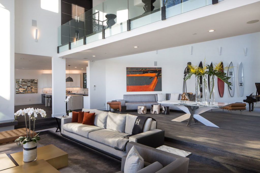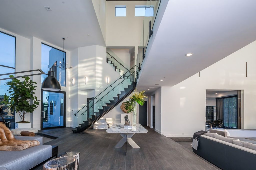 Giant ceiling height with multi-window pockets Fleetwood windows open to large outdoor spaces that allow the true California indoor lifestyle to live outdoors. Beverly Hills Modern Home of Luxury.