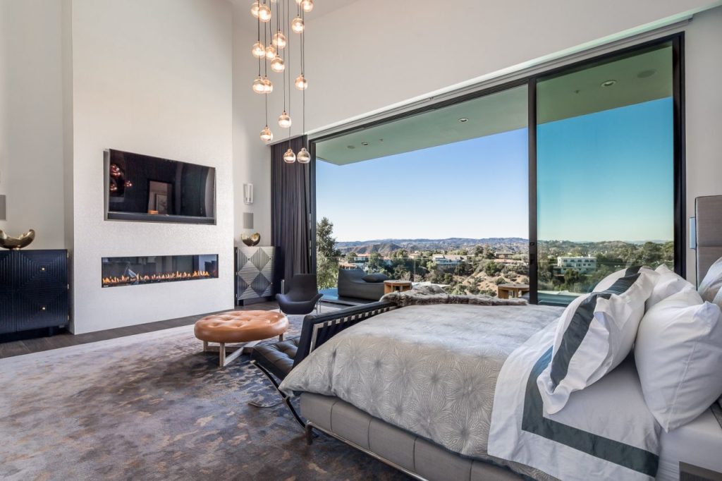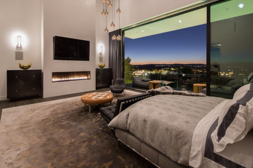Incredible master including luxurious shower and sauna, 2 large-screen TVs, infinity bathtub with sunset and hilltop views, beautiful fireplace, private communication area and two balconies.