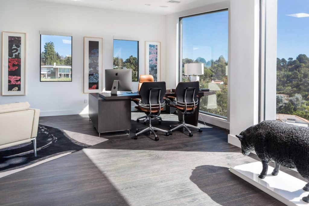 The third floor offers a professional size office with views of Trousdale Estates and the ocean. Open up the office a private staircase from the master leading to a large doorless wardrobe with a beautiful marble central island to store most valuable items.