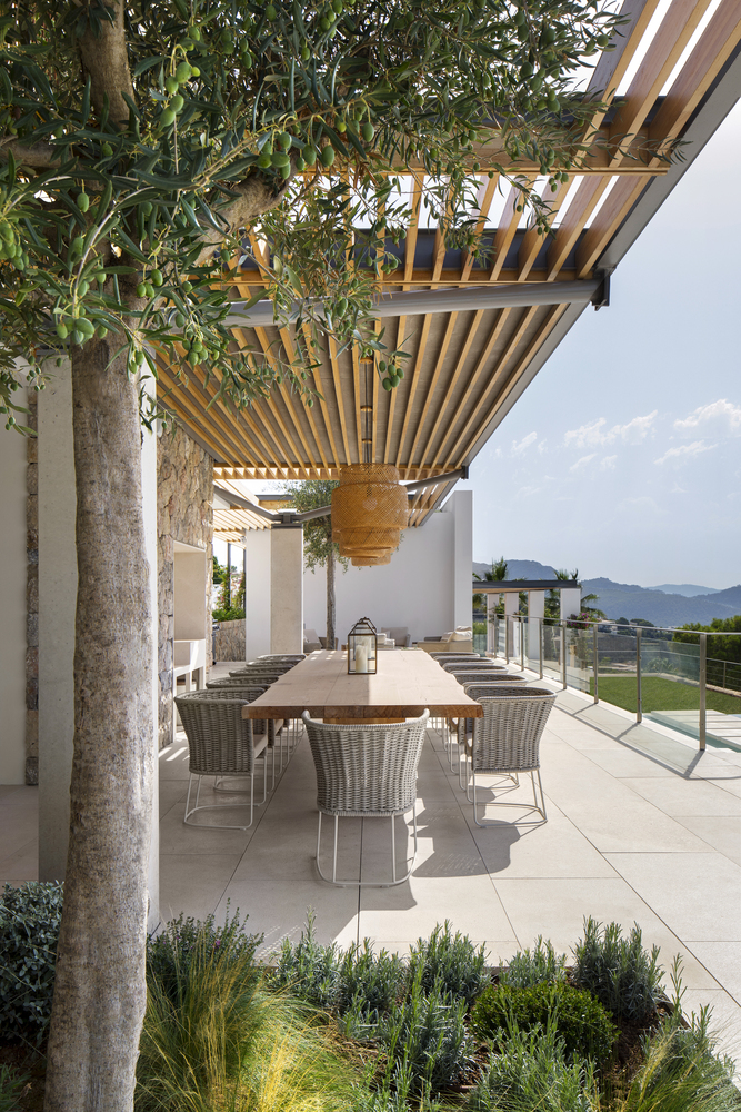 Overlooking the Port d’Andratx, this multi-level villa blends naturally into its surrounding landscape. It is a comfortable family home with four children’s bedrooms. The main bedroom overlooks the incredible vista of port, sea and mountains. The villa offers stunning views and spectacular outliving spaces with patio, infinity pool pool and garden. Besides, the free-flowing design dissolves the threshold between interior and exterior, maximizes the experience of luxury outdoor living. Being a holiday home, the chosen color palette is fresh, earthy and warm with pops of color. Once inside, this luxury villa bring the amenities with wonderful ideas of living room, dining room; kitchen; bedroom and bathroom. Without a doubt, this is a one-of-a-kind contemporary home that’s as luxurious as 5-star resort with the comforts of a home.