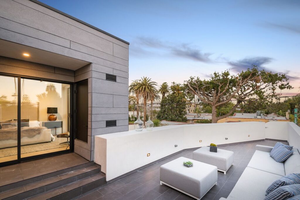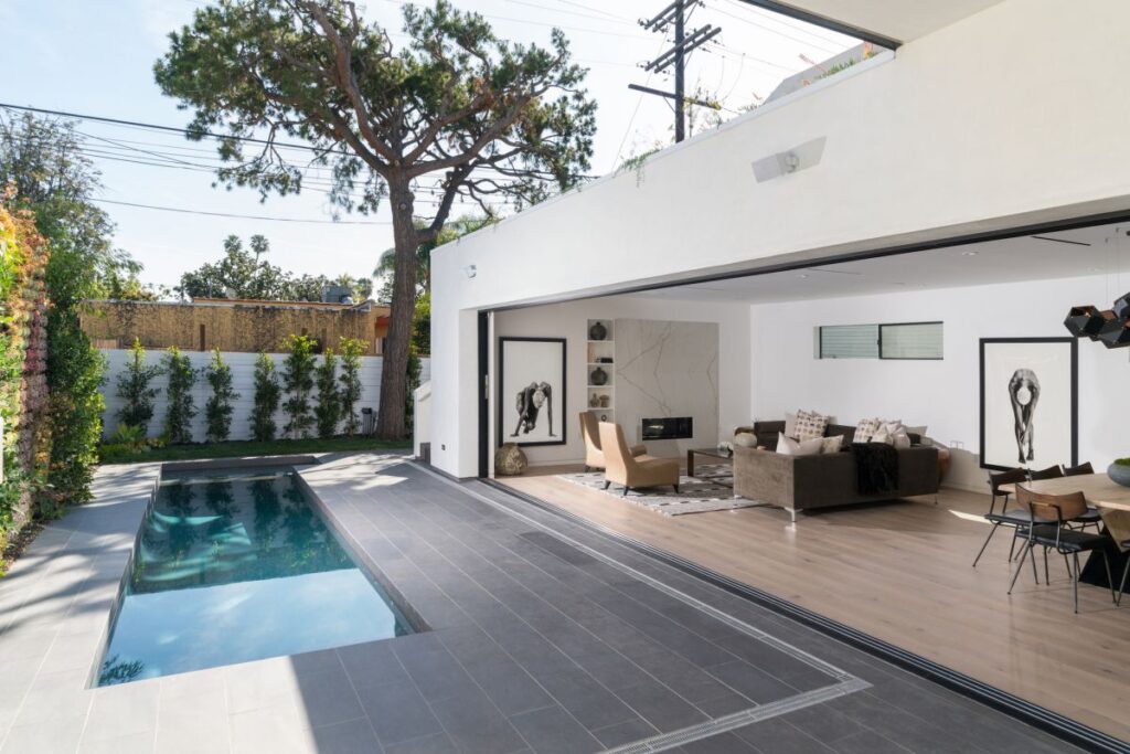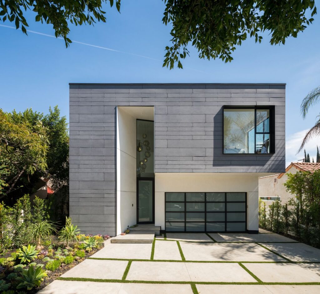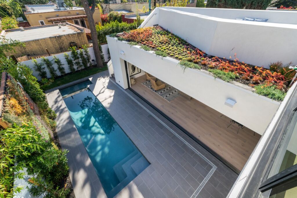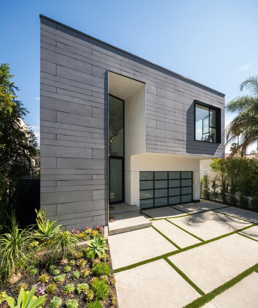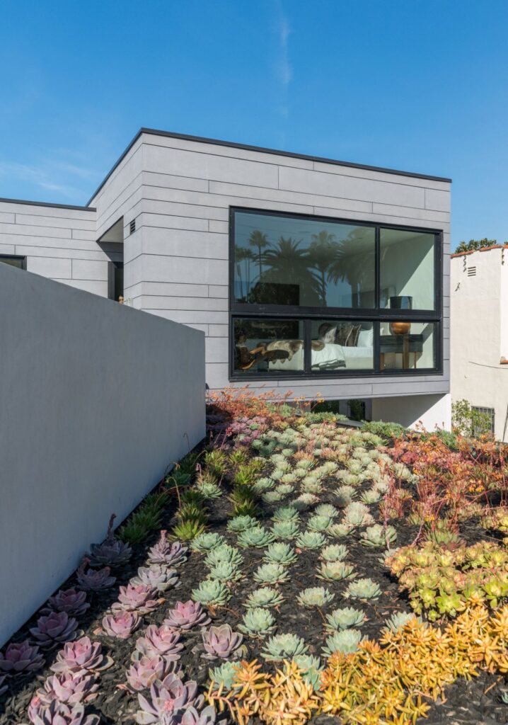 Text by the Architects: This 4,500 square-foot single-family home, situated in the Melrose district neighborhood, was designed to meet the economic demands of maximizing square footage while preserving indoor-outdoor living. A roof garden provides additional outdoor space that was otherwise displaced by the building footprint. The material shift of white stucco against gray Equitone fiber cement board panels is intended to read as if the gray mass is being cut away to reveal the museum quality white interior—like a box with incisions made into it. A balcony off the master bathroom is the perfect example. Challenged by a lot only 40 feet wide, the residence features living spaces designed to open to the outside. An existing pool was reduced in size and left in place so the main living spaces open to it.