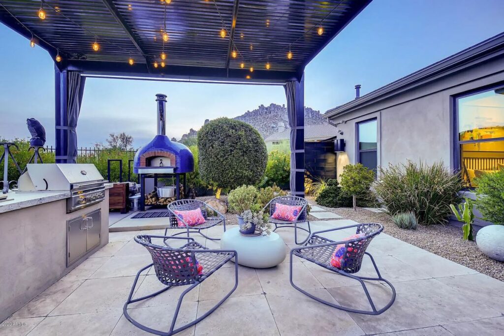 Text by the Agent: Scottsdale House for Sale is a contemporary luxury; artistically placed on a nearly 2 acre cul de sac lot with breathtaking Panoramic 240 degreee mountain views and city lights! designed by world renowned architect Piet Boon. This rare home is situated on a desert botanical landscape and is the perfect combination of exquisite design; & superior finishes with meticulous attention to detail. 4 bed, 3.5 bath, split floor plan; spa like master bath with access to a oasis outside shower; Sleek interior with too many upgrades to mention including Bi fold & pocket doors; smart home automation and endless glass to maximize views are just a few. Enjoy Arizona sunsets and entertain from the travertine patio; two large fire pits, gas fireplace under the covered patio and imported Italian Pizza oven.