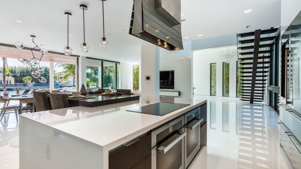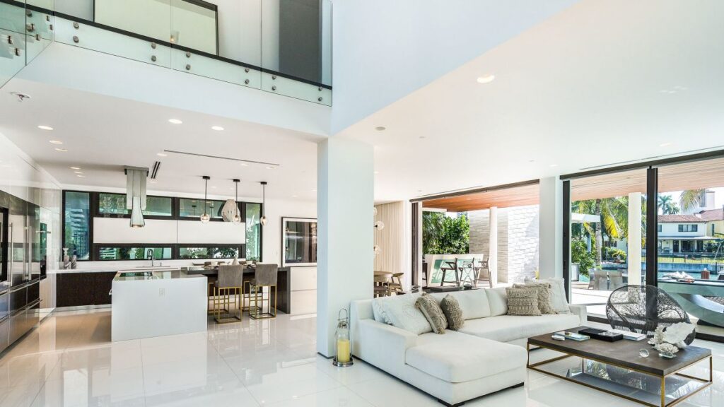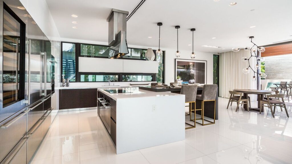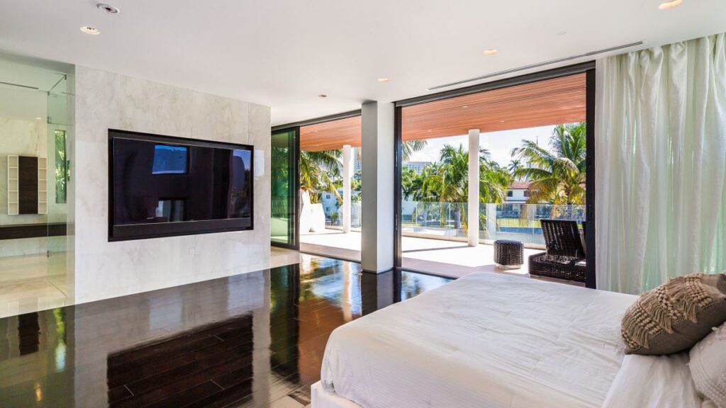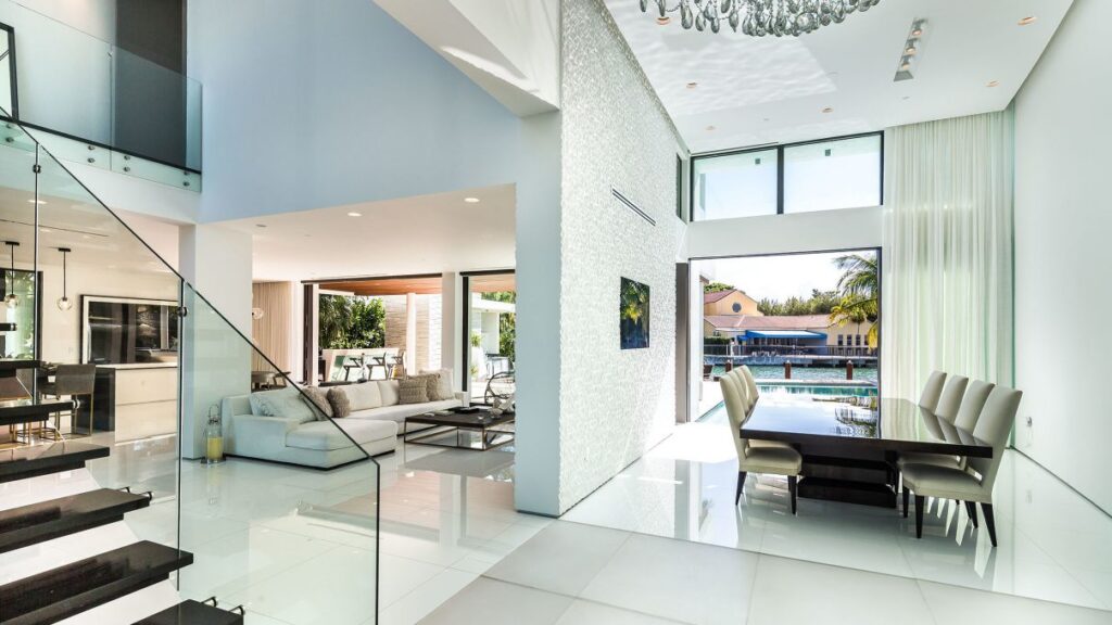Lakeview Court Modern Home in Miami Beach, Florida was designed by Borges Architects in Modern style with expansive living and outdoor spaces, featuring double-height ceilings and floating staircases. This new construction home includes 5 bedrooms, 6 bathrooms with 6,300 square feet of living spaces. This home located on beautiful lot 0.37 acres with amazing views and wonderful outdoor living spaces including patio, pool, garden and more. This home is truly dream house was built from excellent home design combined by wonderful living room idea, dining room idea, kitchen idea, bedroom idea, bathroom idea, outdoor living idea and other great ideas.