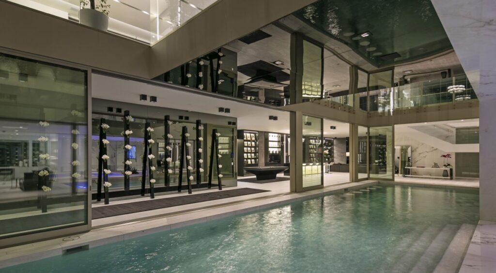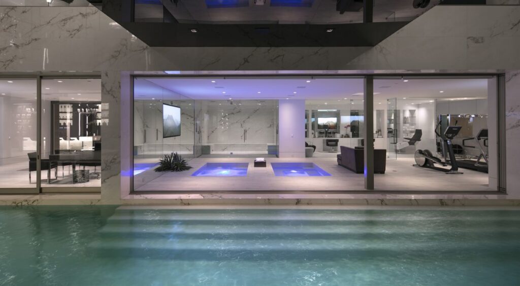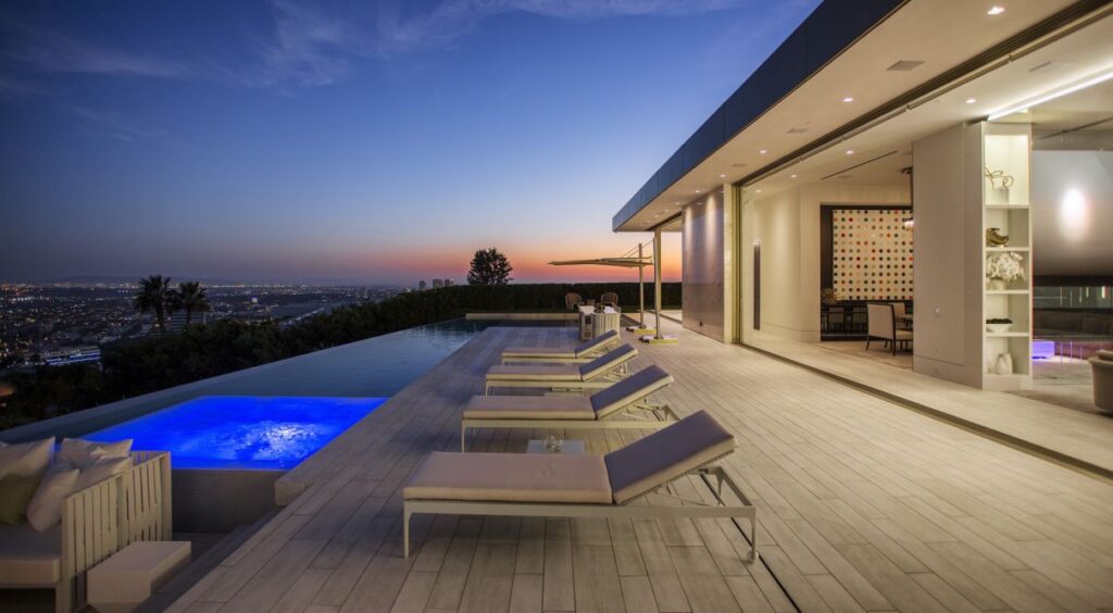 Designed by world-renowned architect, Paul McClean, master of space, light and flow. No expense was spared. This modern Shangri-La features only the most top of the line amenities in the world including two luxurious pools, two gourmet kitchens, walk-in temperature controlled pantry, an oversized theater, wine cellar, billiards room, car museum and mind blowing audio/visuals. The most spectacular and luxurious organic modern home ever constructed, in the prestigious Trousdale neighborhood of Beverly Hills. Set on a promontory in Billionaires Row with the most explosive views in all of Los Angeles.