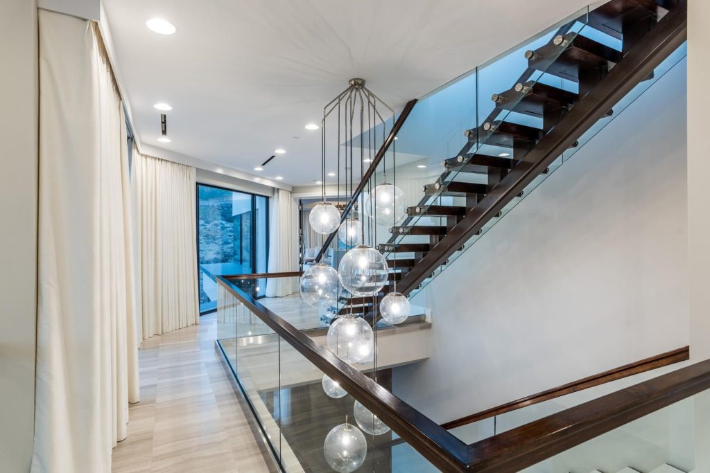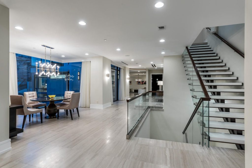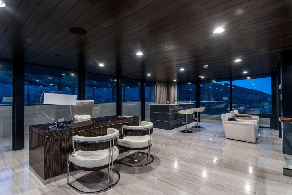 Modern Mansion in Las Vegas – Behind a private gated entrance against the desert hillside is SkySide – an architectural masterpiece that seamlessly blends elements of nature, artistic flair, modernity and sophistication. This six-level home is one-of-a-kind with a three-story stylish master suite and 10,474 square feet of outdoor living on a rooftop patio and multiple terraces. Enjoy life filled with luxury, tranquility and picturesque views at SkySide. Magnificent Luxury Echo Peak Lane Modern Mansion in Las Vegas.