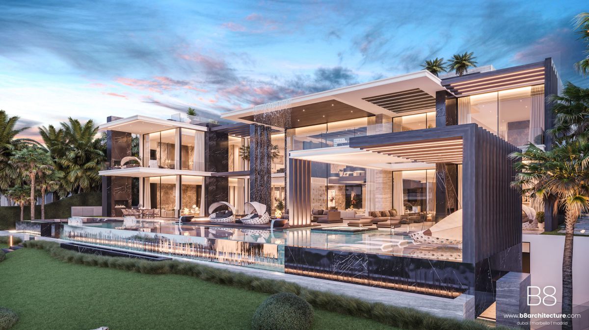 Conceptual Design of Emirates Hills Luxury Mansion in Dubai, UAE was designed by B8 Architecture and Design Studio in Modern style; it offers luxurious living from high end finishes and luxurious amenities. This home located in one of the most prestigious areas of Dubai with amazing views and wonderful outdoor living spaces including patio, pool, garden and more. This home is truly dream house was built from excellent home design combined by wonderful living room idea; dining room idea; kitchen idea; bedroom idea; bathroom idea; outdoor living idea; and other great ideas.