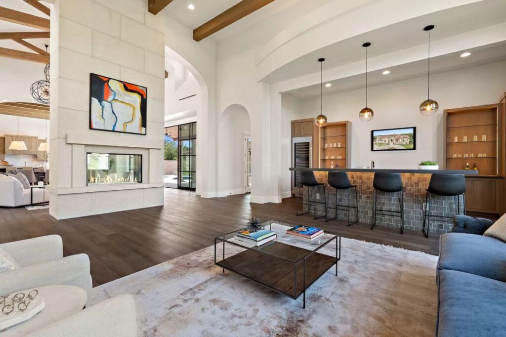 Text by the Agent: Modern and European estate for sale in Austin; this stunning new home in Spanish Oaks glistens with style. Master crafted with vast architectural details throughout by Vanguard Studios; this large single story home is complete with fountain filled courtyards; three main level living areas, five bedrooms, six full and two half baths on the main level. In addition; there’s an upper level studio and a large lower level recreation area. Built for gracious entertaining; the state of the art kitchen has an open flow; and is expertly appointed and ideal for large gatherings.