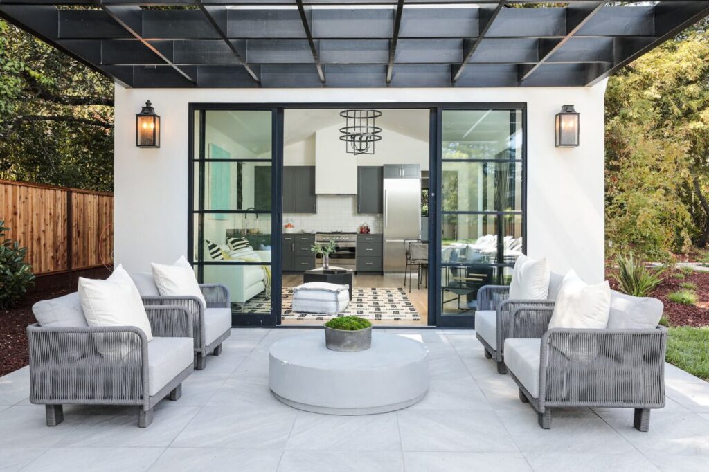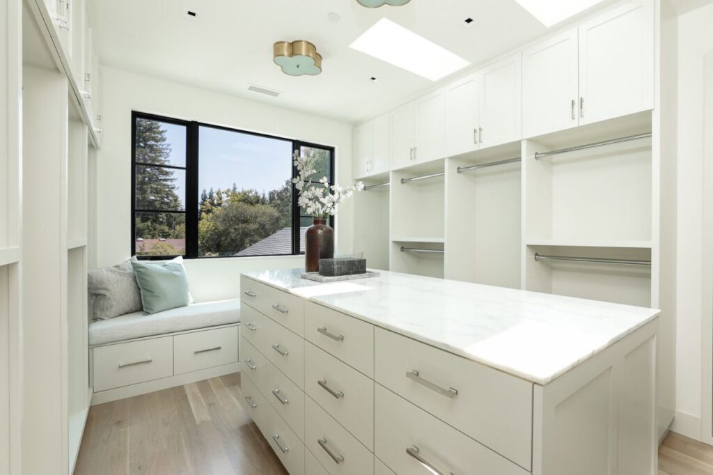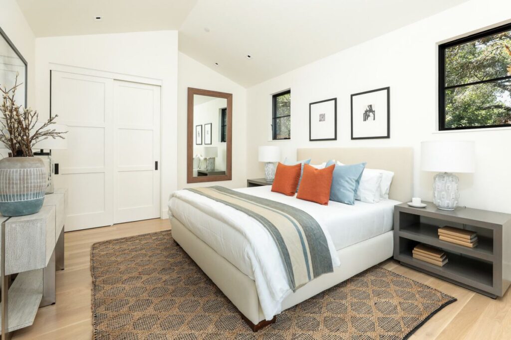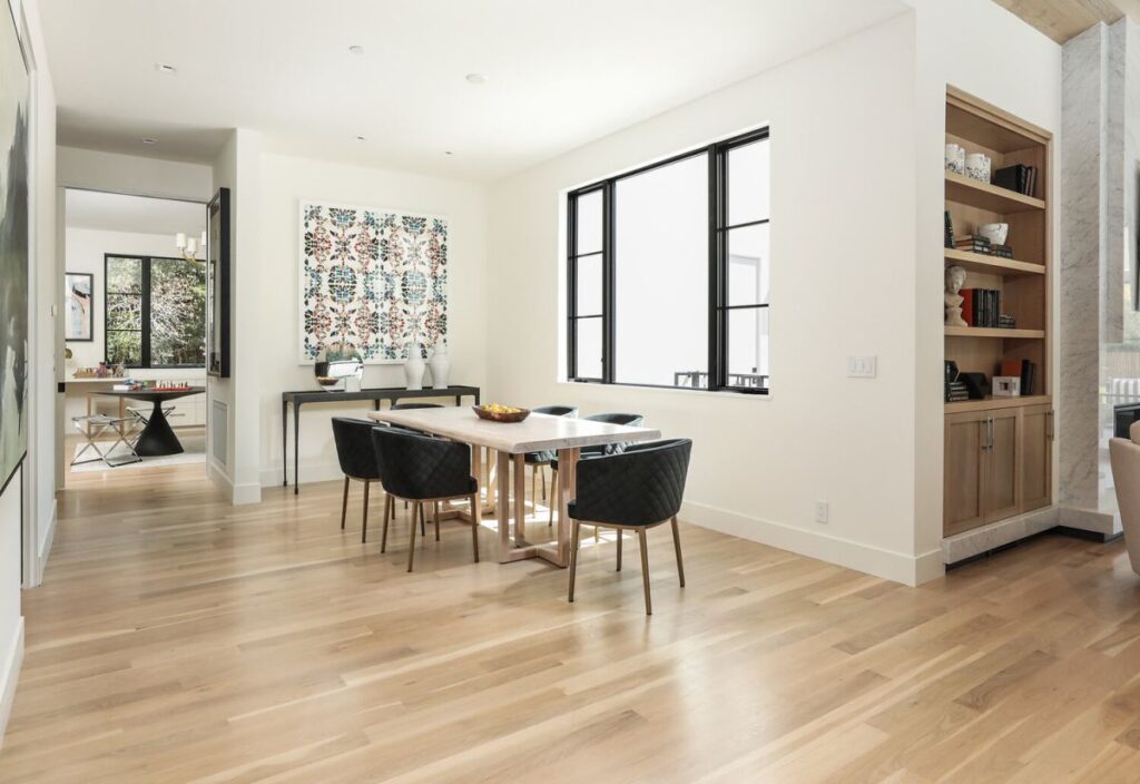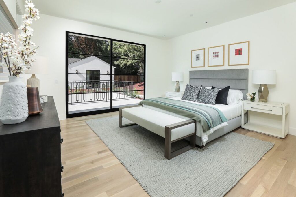Six bedroom suites easily accommodate multi-generational households, as well as those with staff, plus there is a detached guest house. A junior suite is conveniently located on the main level with a private outside entrance; while the lavish primary suite is found upstairs along with three more bedroom suites. Every bedroom has a walk-in closet, two bathrooms have curbless showers for ease of use, and the primary suite bath includes a steam shower. New Modern European Atherton Home for Sale.