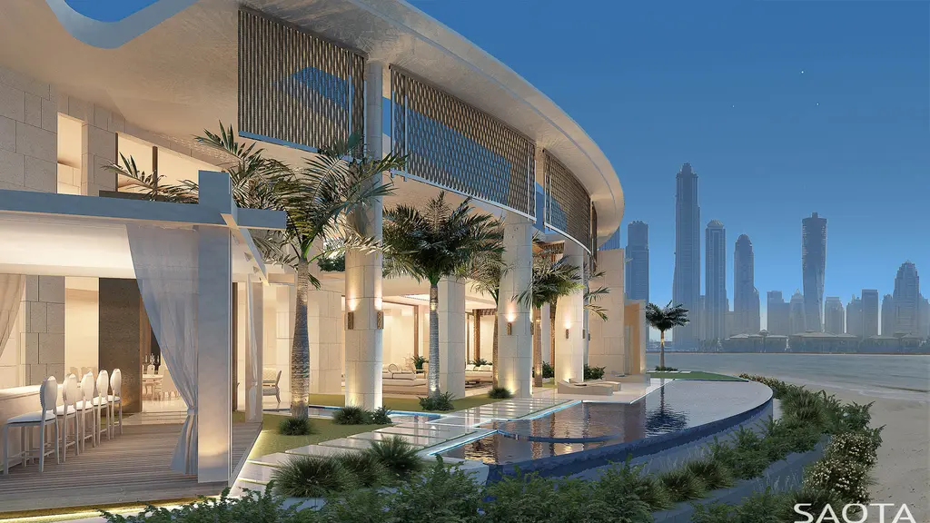 Discover Palm Jumeirah Villa by SAOTA, an oceanfront architectural jewel in Dubai blending modern sophistication with panoramic 180-degree views of the city skyline and sea.