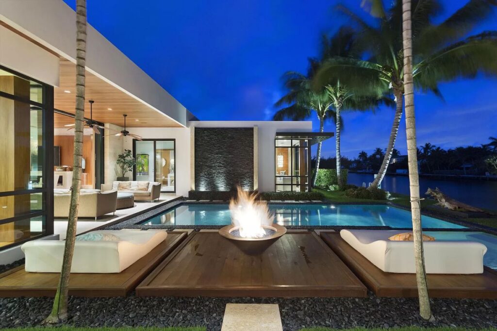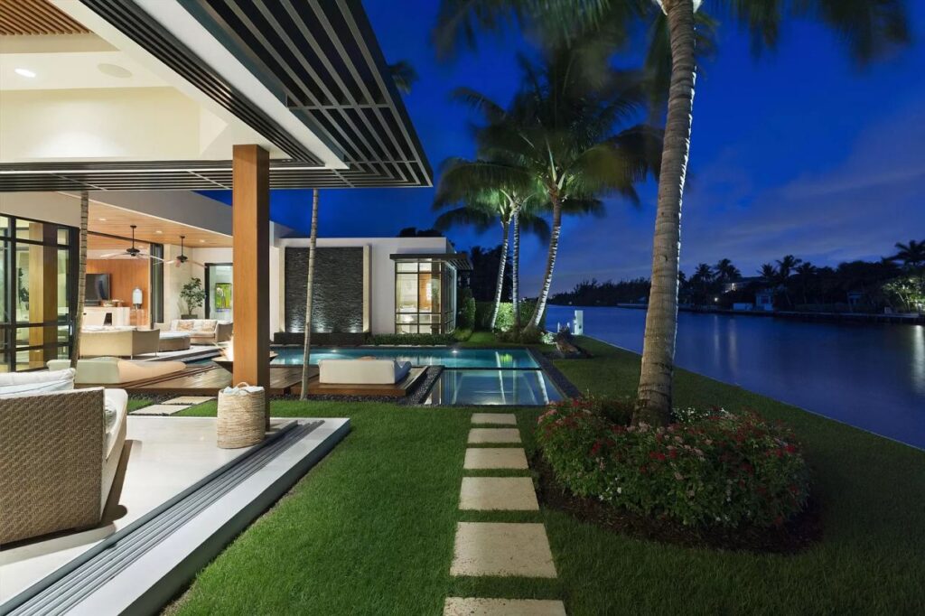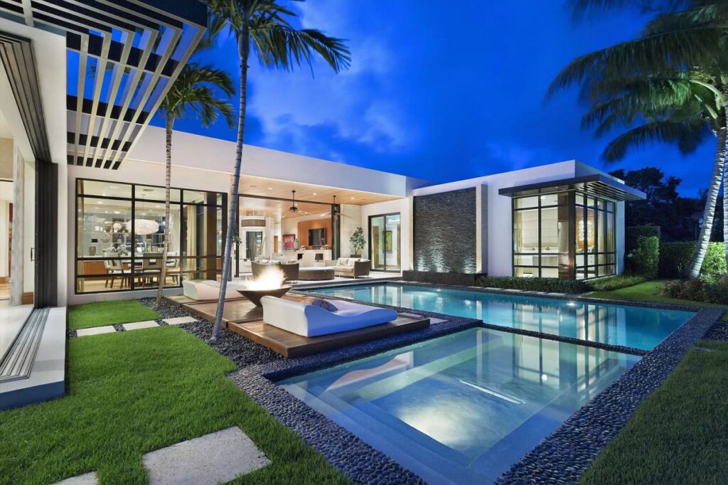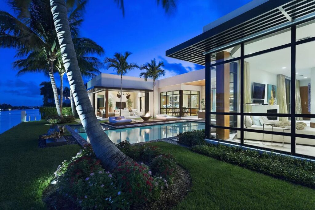 Spanish River Residence in Boca Raton, Florida was designed by Affiniti Architects in Modern Mid-century style offers luxurious living from high-end finish and luxurious amenities. This home located on beautiful lot with amazing views and wonderful outdoor living spaces including patio, pool, garden and more. This home is truly dream house was built from excellent home design combined by wonderful living room idea, dining room idea, kitchen idea, bedroom idea, bathroom idea, outdoor living idea and other great ideas.