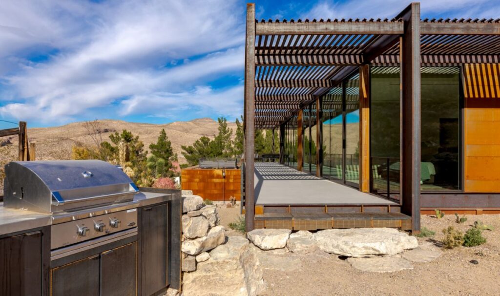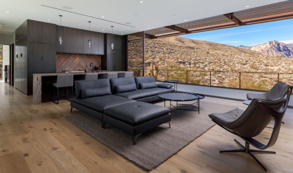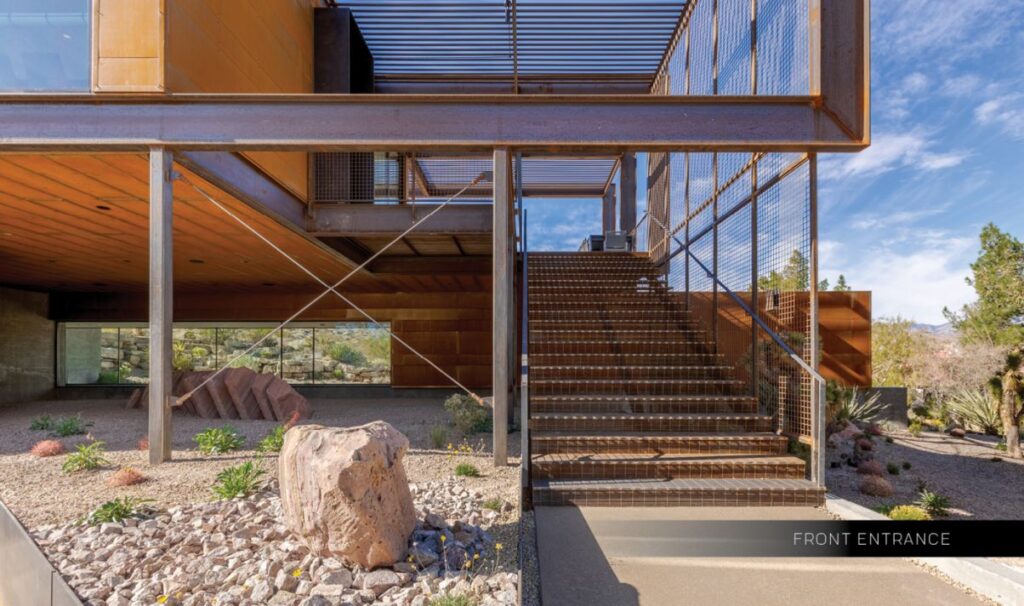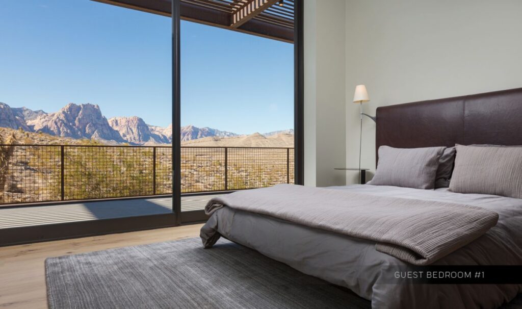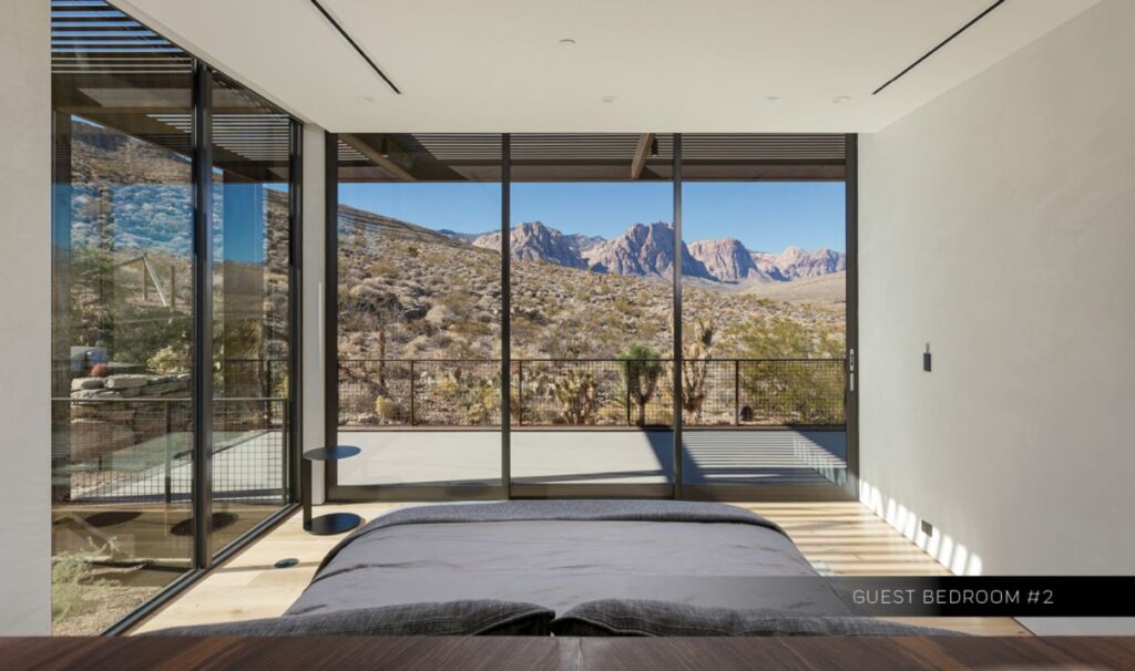 Text by the Agent: The Montana Court Home in Nevada for sale is truly the rarest of diamonds in the rough. Aman-like living in the periphery of a National Park. This concrete and steel “jewel box” with panoramic and unobstructed views of Red Rock Canyon is a true quality over quantity home. With 4,500 square feet under roof and ½ acre of what feels like unadulterated land, this Crestron controlled modern masterpiece will transport you to a place of great solace and inspiration. Ride your mountain bike on world class trails in the morning, hike in the afternoon and gaze amongst the stars at night. This home is a true refuge that evokes peace and introspection unlike any other in Las Vegas.