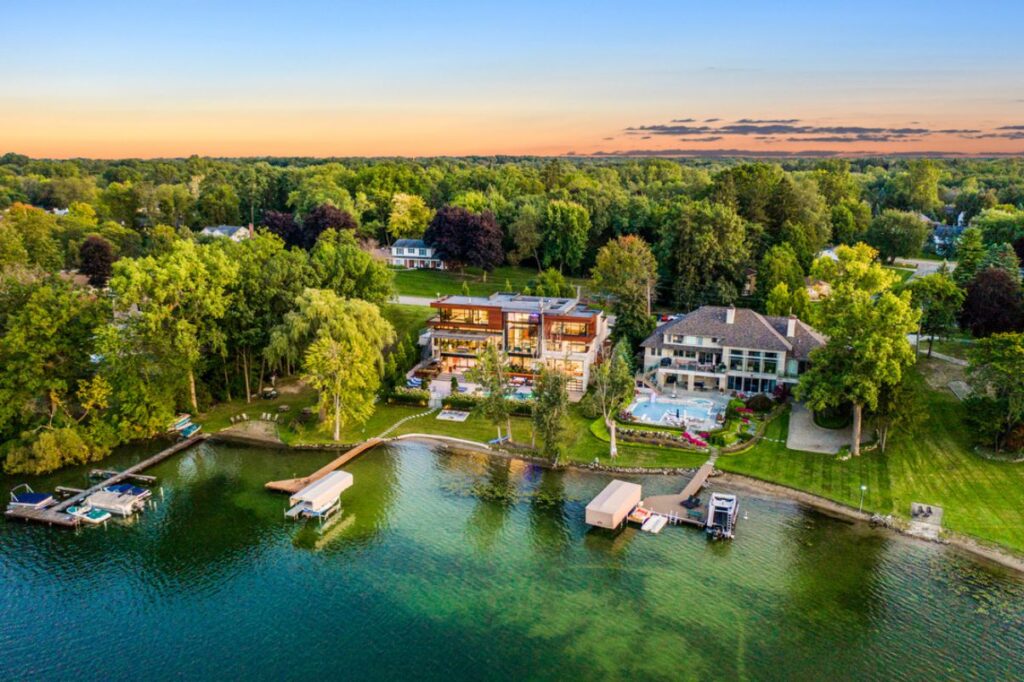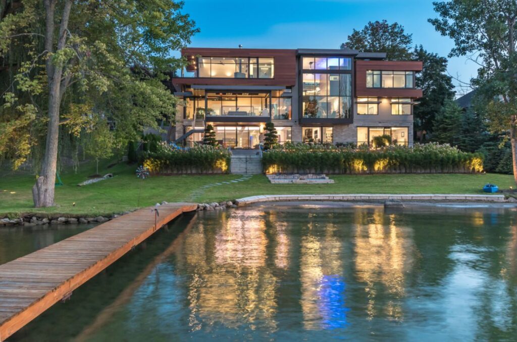 Strawberry Residence in West Bloomfield, Michigan was designed by famed AZD Associates in contemporary style offers luxurious living from high-end finish and luxurious amenities. This home located on beautiful lot with amazing views and wonderful outdoor living spaces including patio, pool, garden and more. This home is truly dream house was built from excellent home design combined by wonderful living room idea, dining room idea, kitchen idea, bedroom idea, bathroom idea, outdoor living idea and other great ideas.