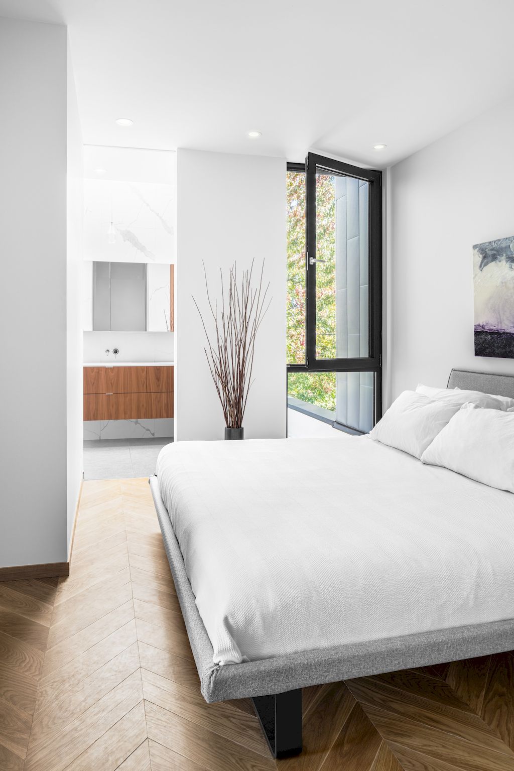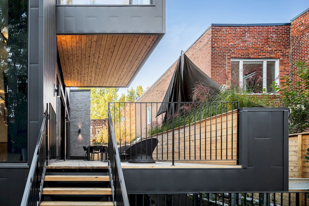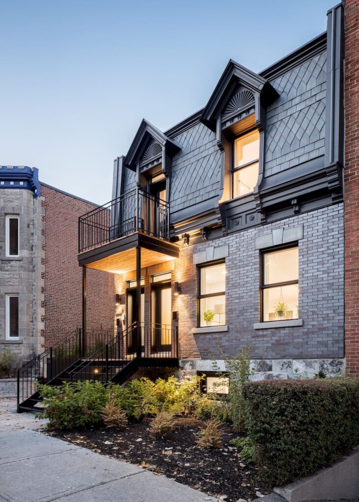 Stunning renovation house named Alexandre de Seve Town House, designed by Guillaume Lévesque Architecte, consists of the restoration of a house built in the 19th century. Also, demolition of the house’s annexes and the construction of a rear addition to contemporary lines. Then, the architect transformed the residence into a multi unit building comprising three units. The project designed in two volumes: the existing building at the front has two rental units: a 4 1/2 housing unit and a 3 1/2 housing unit. The modern addition at the back has the main accommodation organized on three levels.
