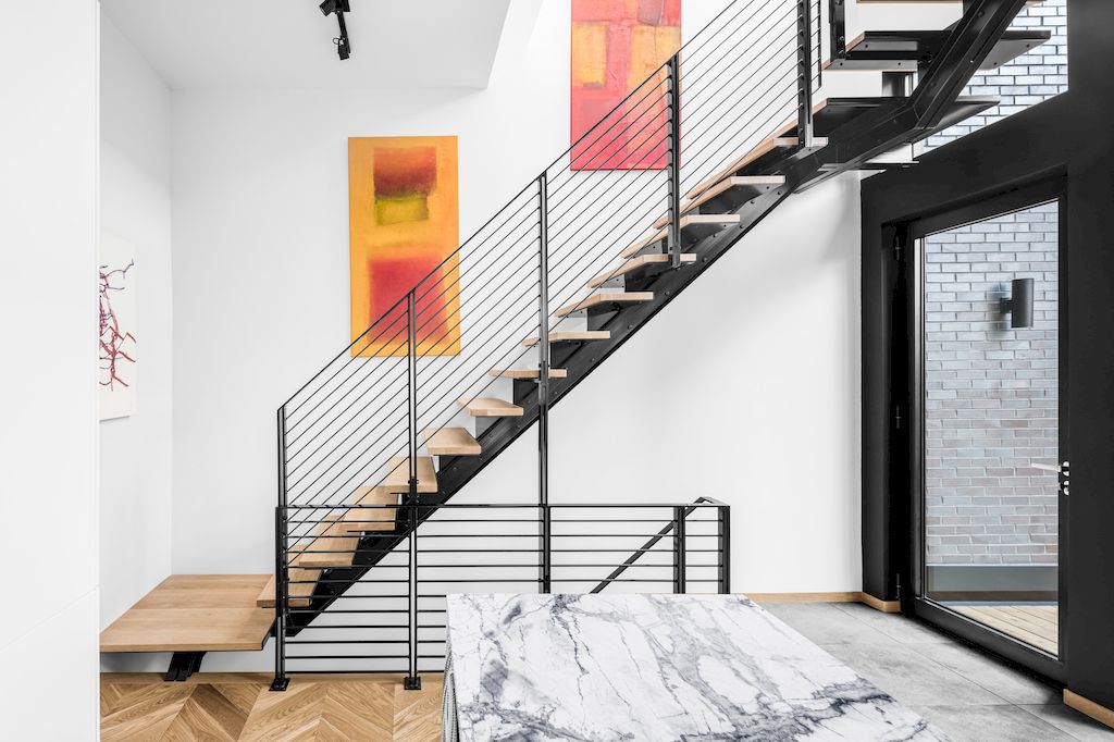 Both apartments have an open plan with abundant fenestration with large 3.65m high side windows carved into the brick wall. Besides, the attic has been completely covered with new slate tiles. The dormers and woodworking have been completely rebuilt. On the ground floor, there is the living room, the dining room and the kitchen in a large open space. In addition to this, a staircase leads to the basement, where two bedrooms are located, as well as the bathroom and the laundry room. The 3 1/2 accommodation located on the 2nd floor. The living room, the kitchen and the dining room are designed in an open area in a largely fenestrated space. Also, the unit offers a bedroom and a bathroom with a skylight.
