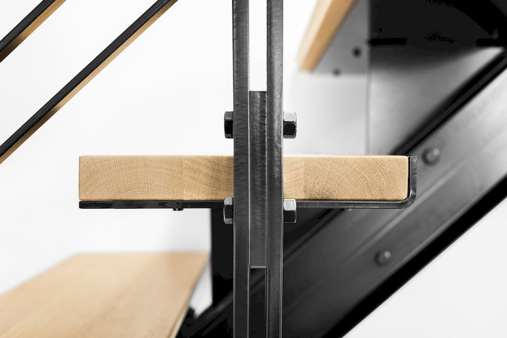 Furthermore, the addition includes large openings providing all interior spaces with a considerable amount of natural light. A sober facing of black metal panels covers the contemporary addition and gives the whole a neat finish.