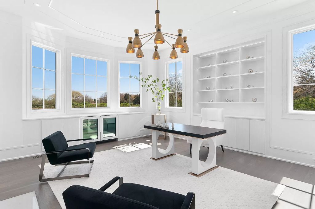 Text by the Agent: 51 Pheasant Lane is located in the prestigious Murray Compound includes its own ocean beaches and is a short distance to Southampton Villages’ multiple beautiful ocean beaches, shops and entertainment. This new high-end construction exquisitely combines modern interior features with Southampton’s classic exterior design. The 28-foot entry foyer with floor-to-ceiling windows and an amazing chandelier is the centerpiece from which the thoughtful floorplan unfolds. The living room anchored by 2 fireplaces leads to the paneled library and to the formal dining room and then opens through Nana doors onto the massive bluestone terrace with sweeping views of the fully landscaped 2 acres. The kitchen gives new meaning to the word with custom built cabinetry, top of the line appliances, a stunning waterfall center island, a dining area and a seating area with yet another fireplace and views of the entire property…