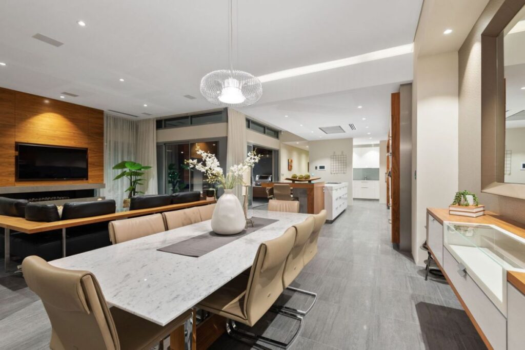 Branksome Gardens Residence is a luxurious home located in City Beach, Australia including 5 bedrooms and 3 bathrooms on lot 665 square meter. This home is designed and built with high quality and smart facilities and luxurious amenities. This amazing home features beautiful living room, dining room, outdoor living as pool, patio, landscaping and more.