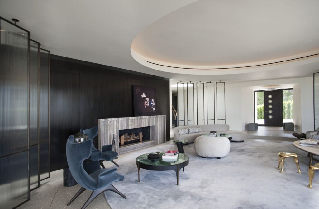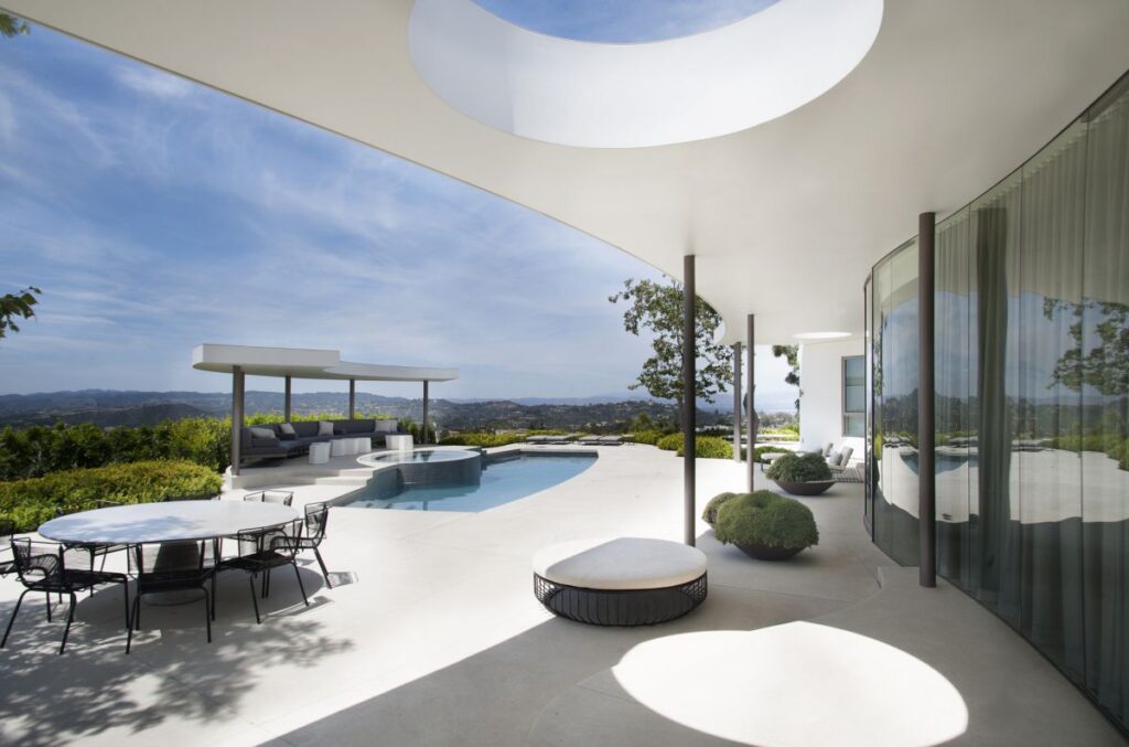This project called for the complete renovation of a 5500 square foot existing home in the Trousdale Estates section of Beverly Hills, California. Paul Trousdale bought 410 acres of the unbuilt property from the Doheny Estate in 1954 and soon after began developing sprawling view properties limited to single-level homes. This property sits near the top of a cul-de-sac road and enjoys roughly 270° spectacular views of Beverly Hills and Los Angeles. The original house was designed in 1962. Curved and circular elements are repeated motifs that can be found throughout the original design.