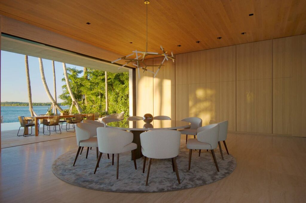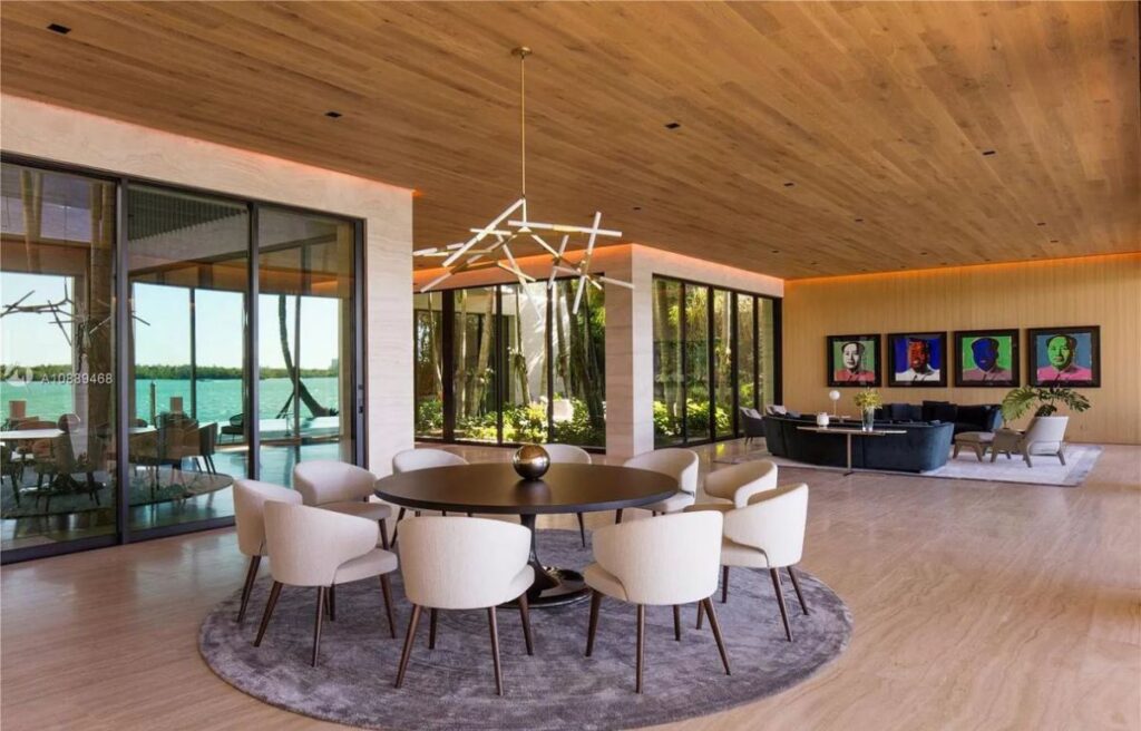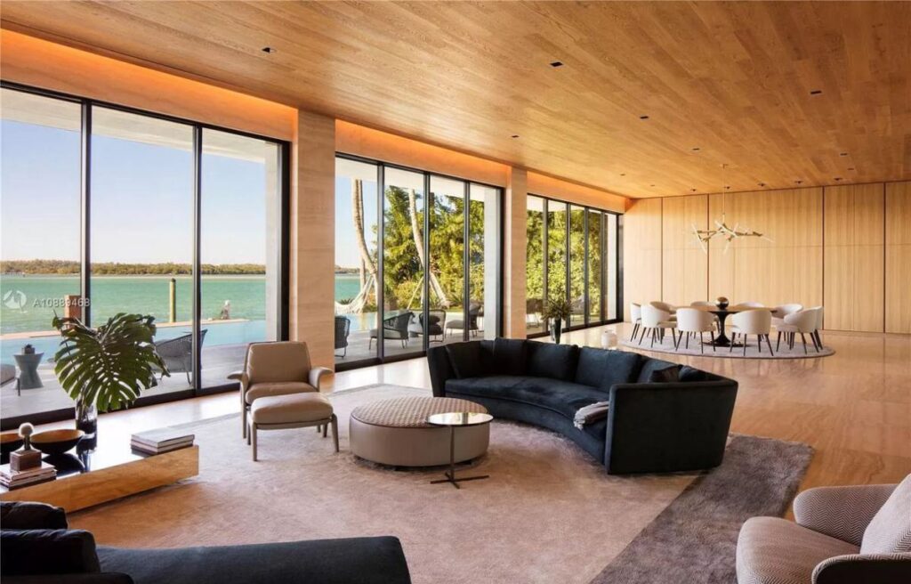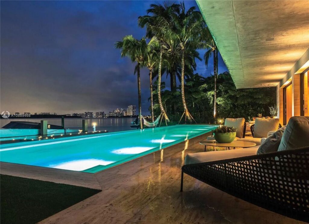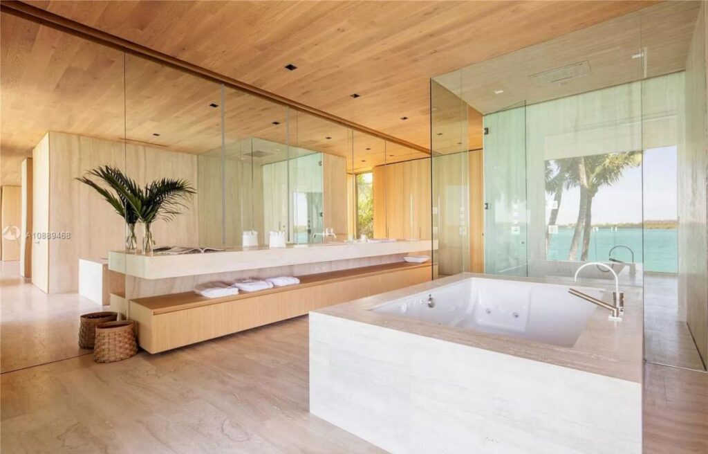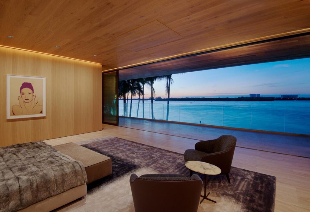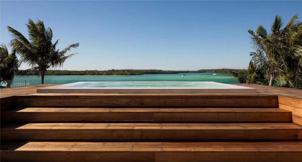 Text by the Agent: The ultimate subtropical modern oasis, this museum-quality residence was crafted in 2016 by award-winningarchitect Chad Oppenheim in the Village of Bal Harbour, one of the most private and secure communities in Miami.The waterfront estate was masterfully designed to seamlessly blur the lines of indoor-outdoor living with over 13,500 square feet of living space on three levels, including a decadent 2,000 square-foot master suite and a spectacular roof deck with jacuzzi and bar. The home boasts Roman Travertine and Belgian Oak throughout. The 75′ X 17′ infinity-edge glass pool is the largest in Miami. Experience spectacular water and sunset views from the homes unique vantage point just 300 yards from one of only two inlets in Miami Beach, where the Atlantic Ocean meets Biscayne Bay.
